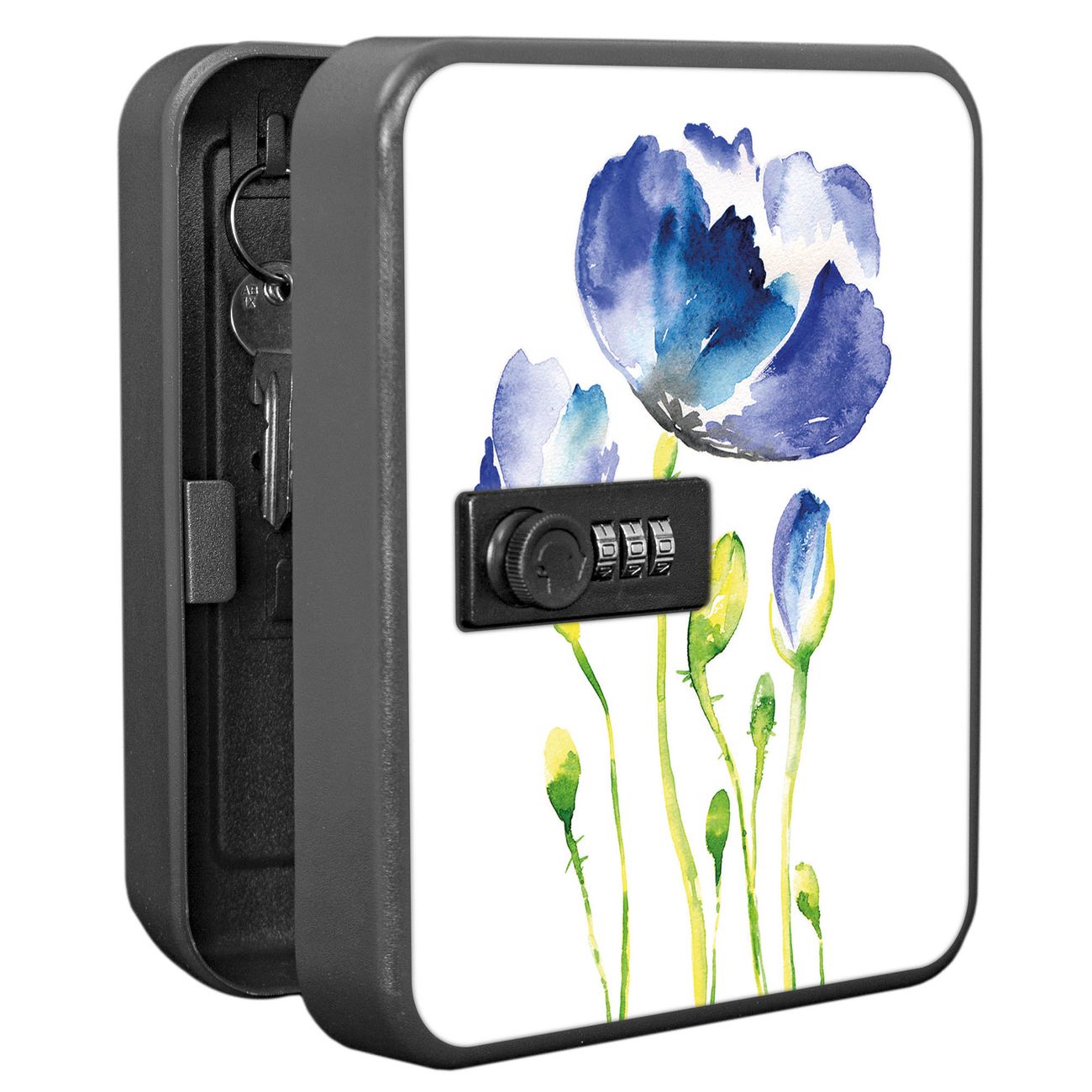 Schlüsselkasten abschließbar Motiv Blauer Mohn