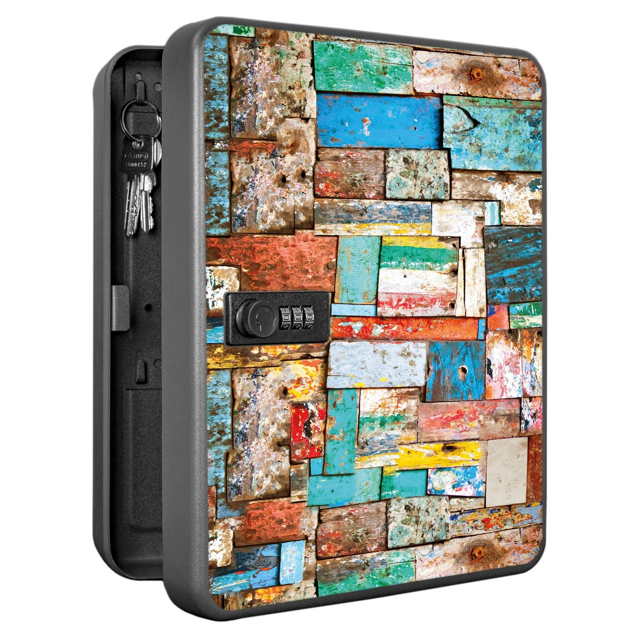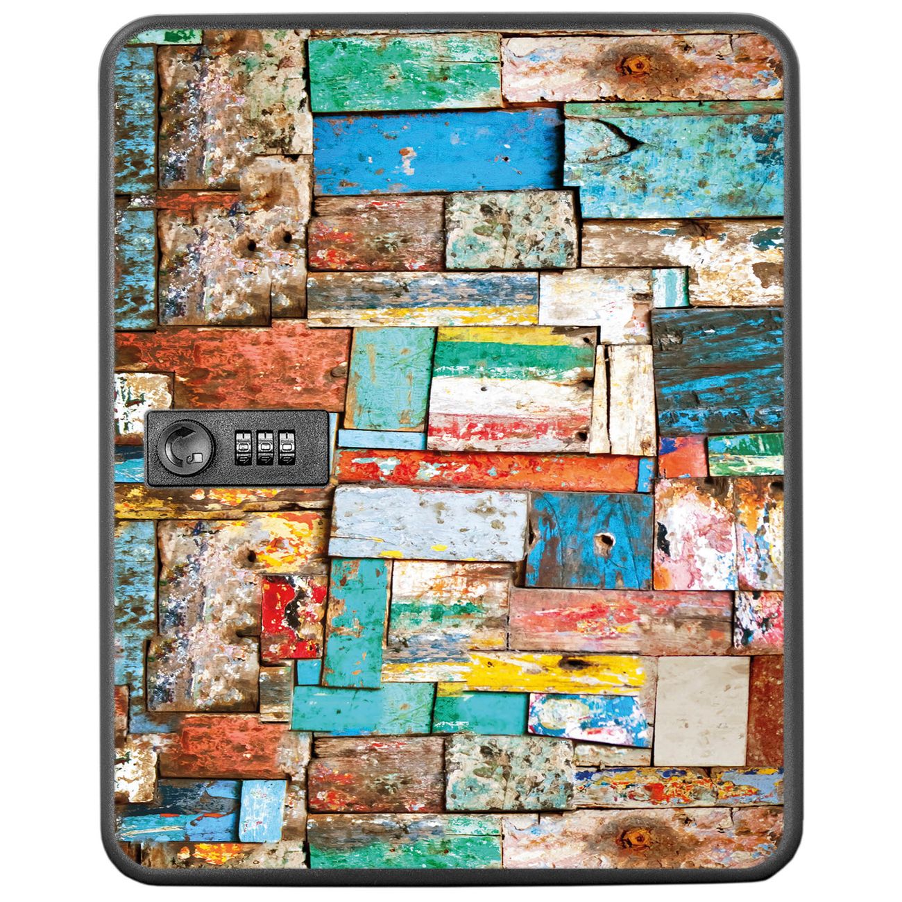 Schlüsselkasten abschließbar Motiv Bunte Holzschindeln