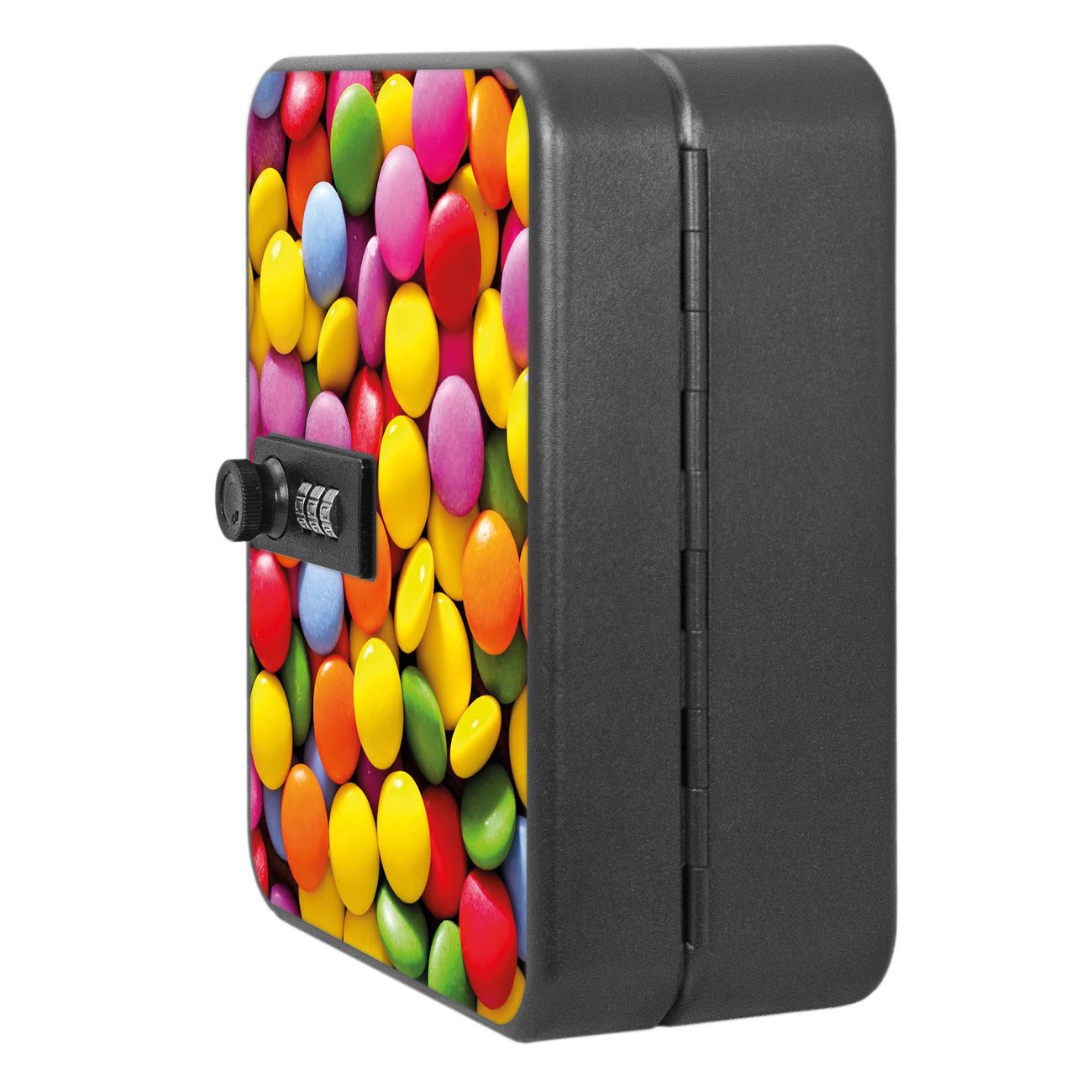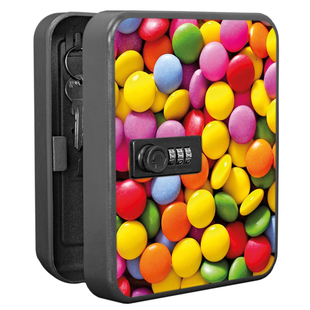 Der Schlüsselkasten ist gesamt 20x16x9,3cm groß und wiegt ca. 900g. Die komplette Schlüsselaufbewahrung besteht aus schwarzem pulverbeschichtetem Stahl und wird von uns auf der Front mit einer Motivfolie kaschiert.