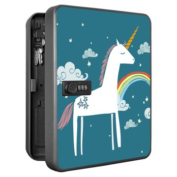 Der Schlüsselkasten ist gesamt 30x24x9,3cm groß und wiegt ca. 1500g. Die komplette Schlüsselaufbewahrung besteht aus schwarzem pulverbeschichtetem Stahl und wird von uns auf der Front mit einer Motivfolie kaschiert.