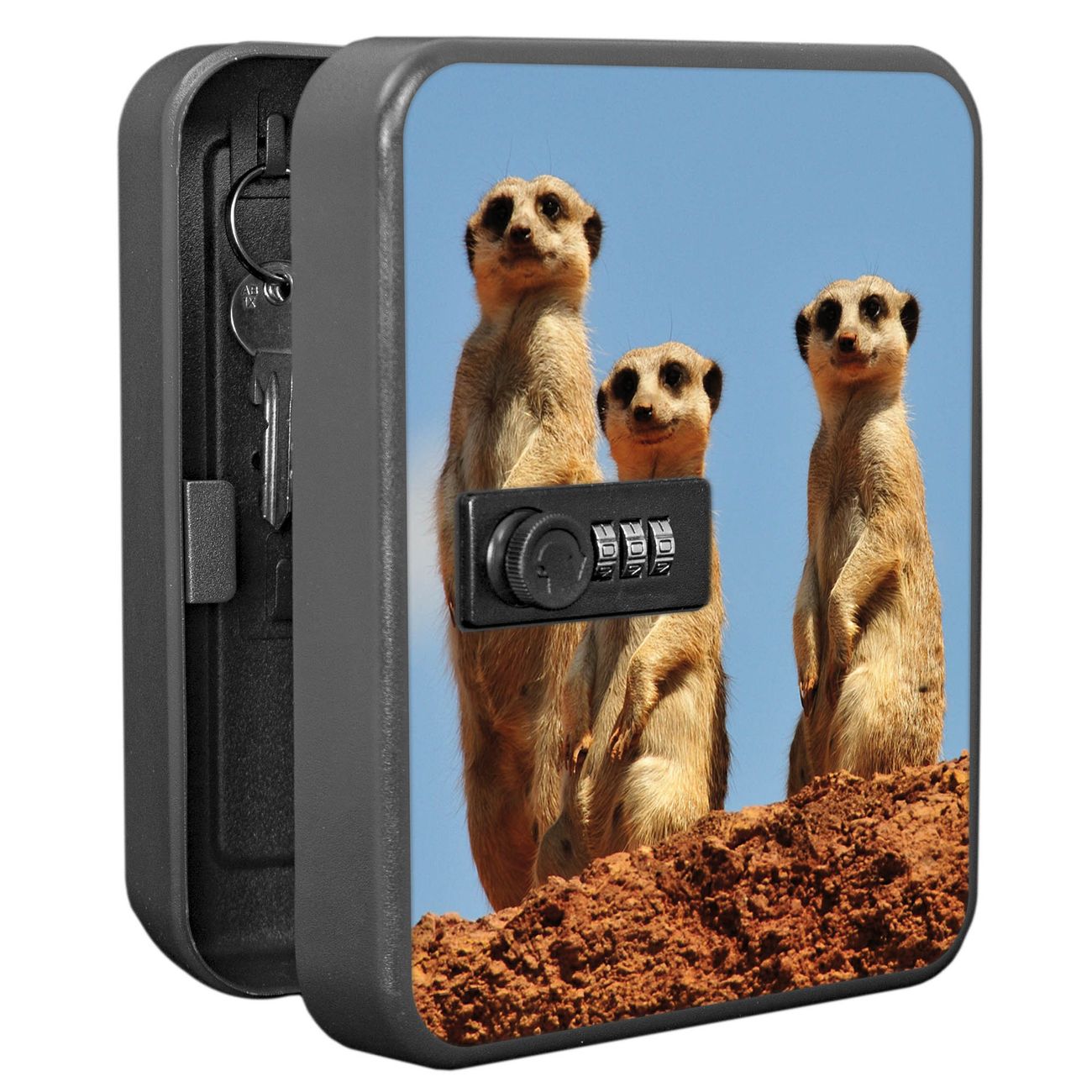 Schlüsselkasten abschließbar Motiv Erdmännchenfamilie