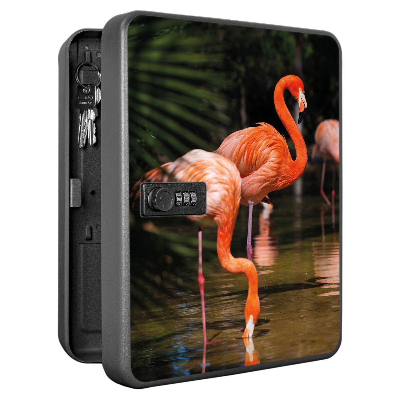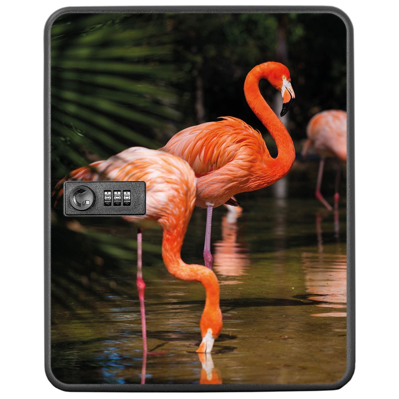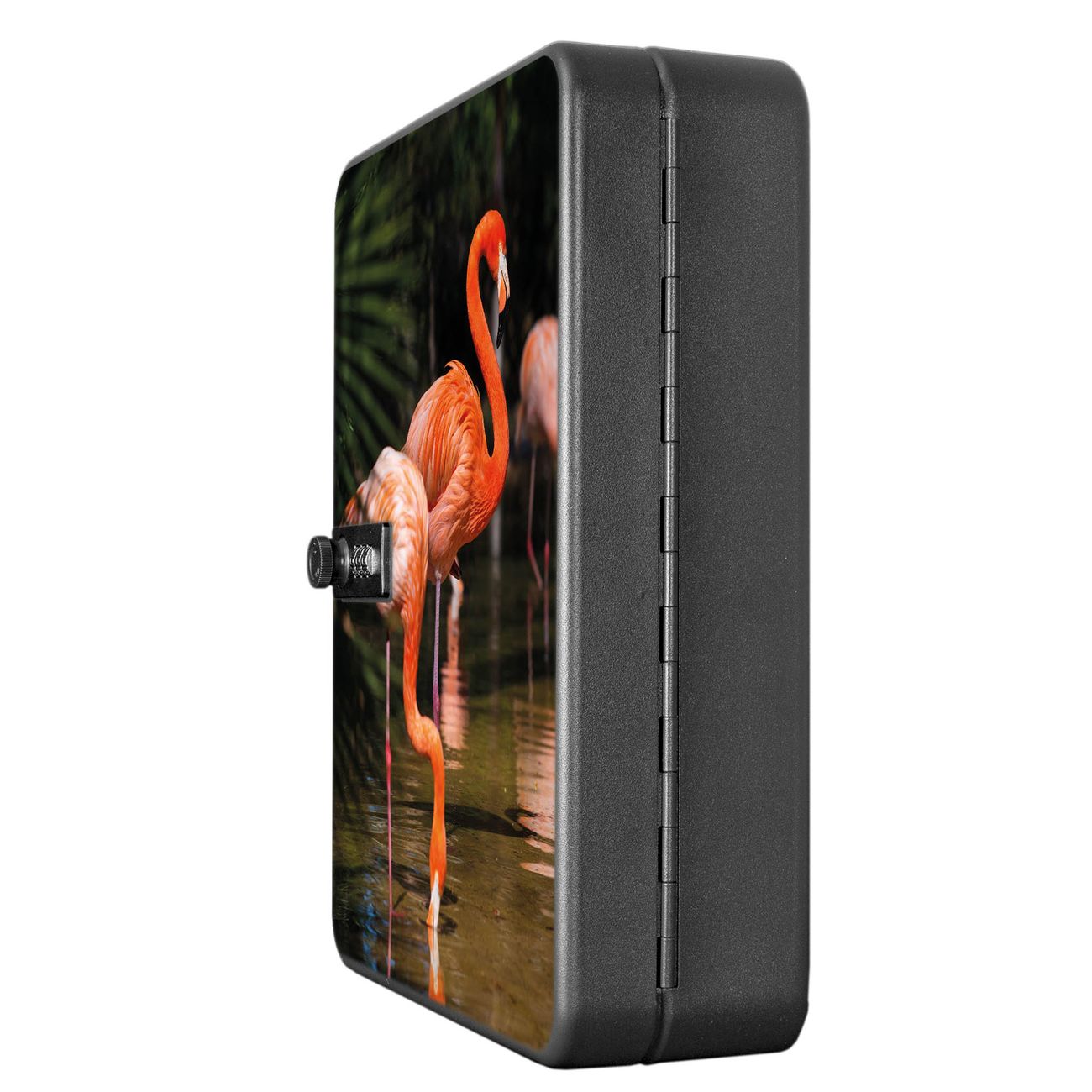 Der Schlüsselkasten ist gesamt 30x24x9,3cm groß und wiegt ca. 1500g. Die komplette Schlüsselaufbewahrung besteht aus schwarzem pulverbeschichtetem Stahl und wird von uns auf der Front mit einer Motivfolie kaschiert.