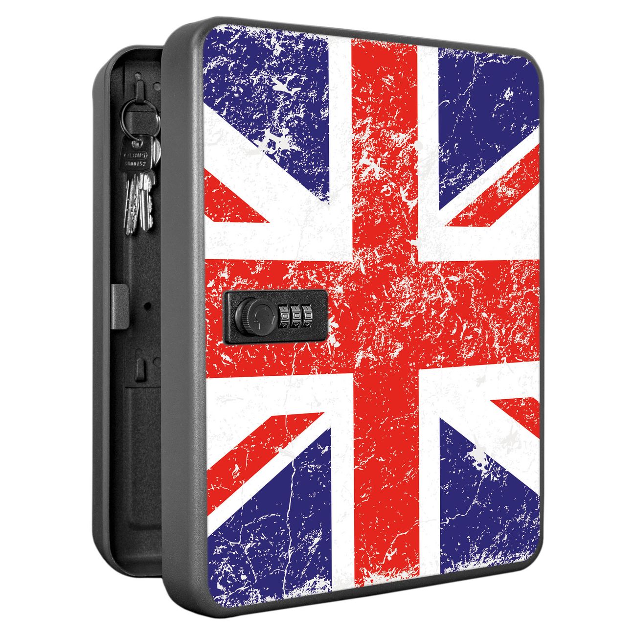 Der Schlüsselkasten ist gesamt 30x24x9,3cm groß und wiegt ca. 1500g. Die komplette Schlüsselaufbewahrung besteht aus schwarzem pulverbeschichtetem Stahl und wird von uns auf der Front mit einer Motivfolie kaschiert.
