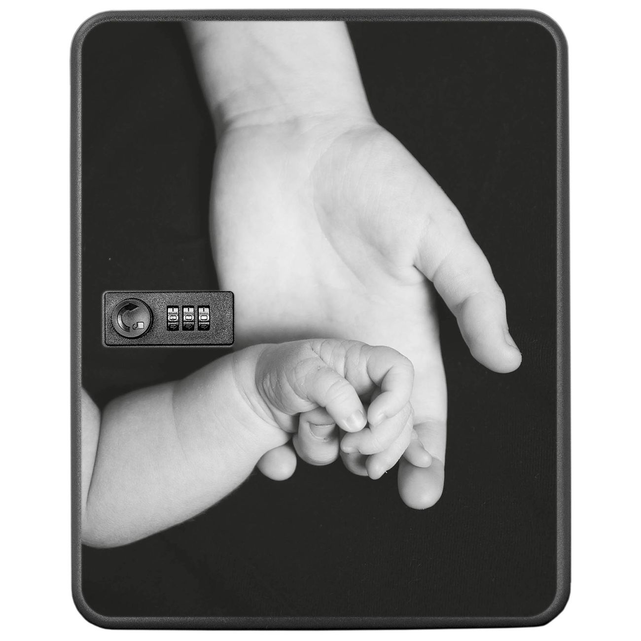 Der Schlüsselkasten ist gesamt 30x24x9,3cm groß und wiegt ca. 1500g. Die komplette Schlüsselaufbewahrung besteht aus schwarzem pulverbeschichtetem Stahl und wird von uns auf der Front mit einer Motivfolie kaschiert.