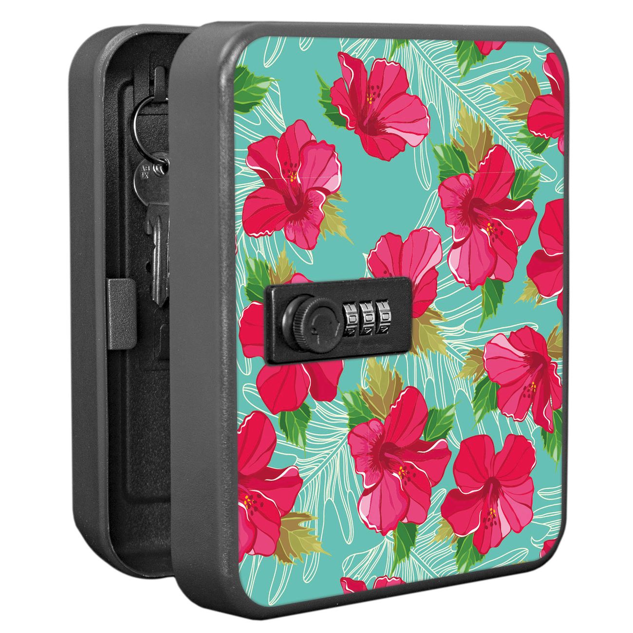 Schlüsselkasten abschließbar Motiv Hibiskus