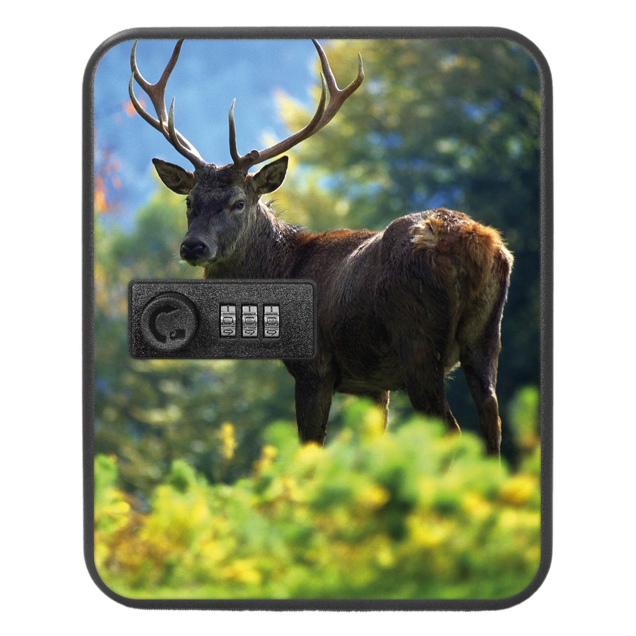 Der Schlüsselkasten ist gesamt 20x16x9,3cm groß und wiegt ca. 900g. Die komplette Schlüsselaufbewahrung besteht aus schwarzem pulverbeschichtetem Stahl und wird von uns auf der Front mit einer Motivfolie kaschiert.