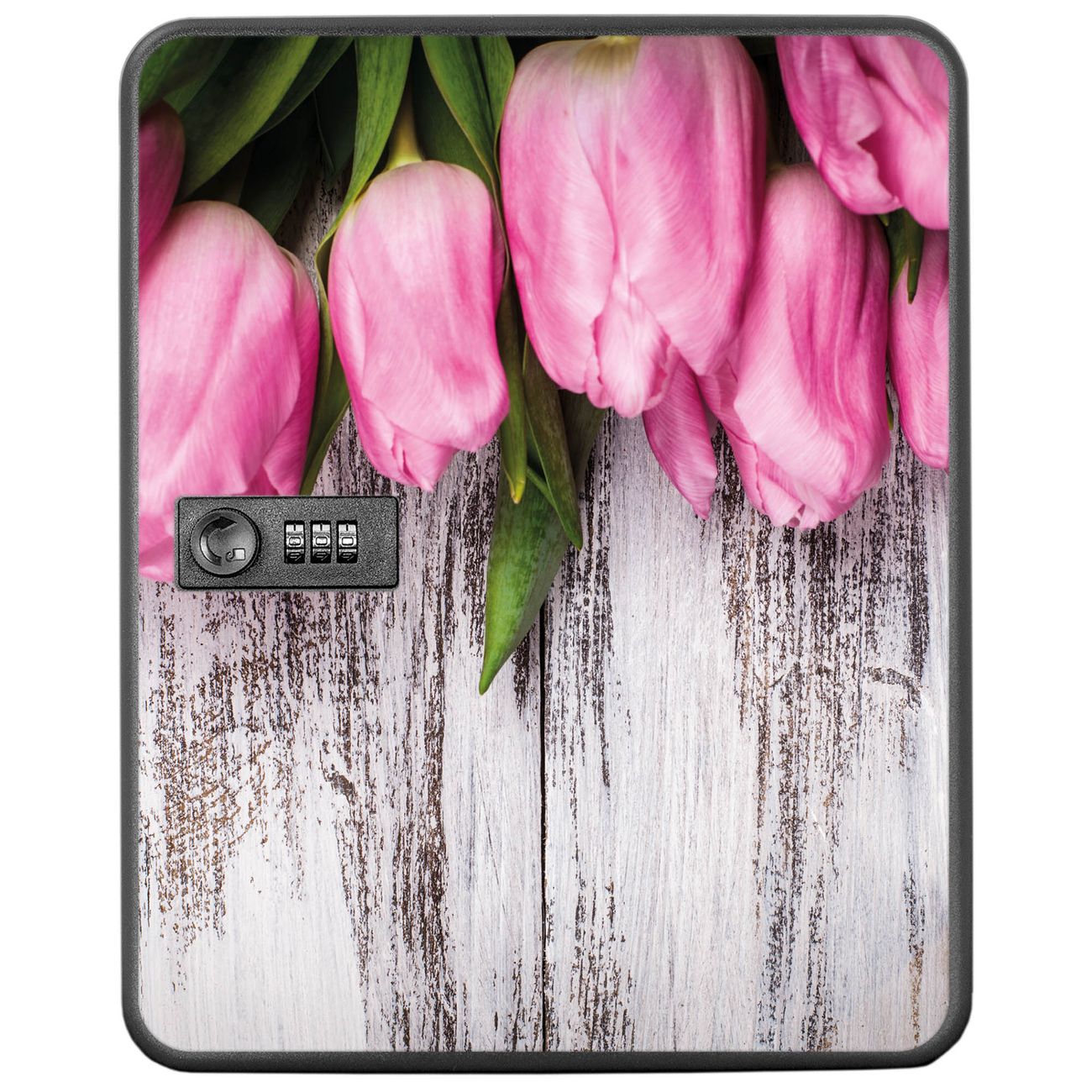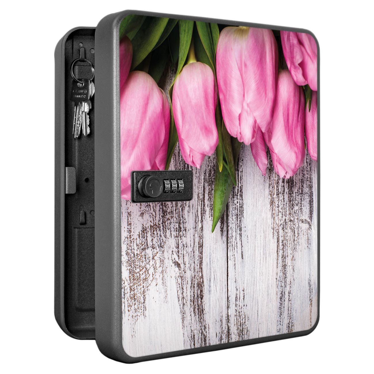 Schlüsselkasten abschließbar Motiv Holz und Tulpen