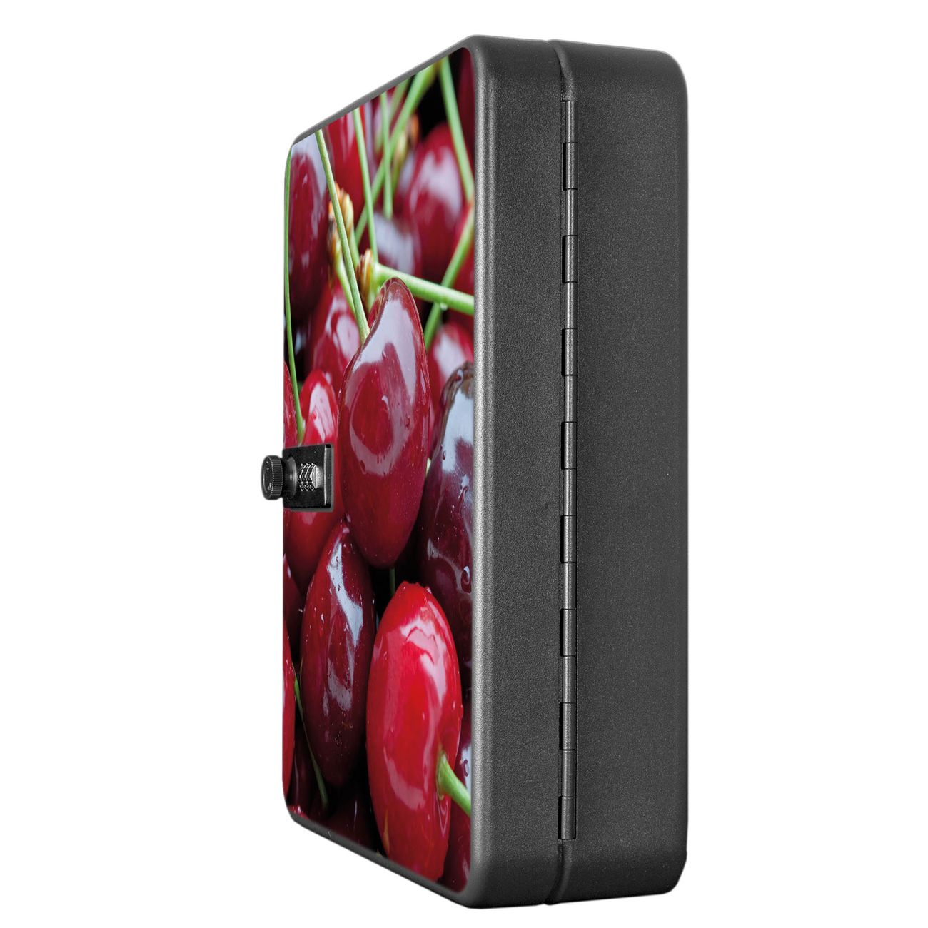 Der Schlüsselkasten ist gesamt 30x24x9,3cm groß und wiegt ca. 1500g. Die komplette Schlüsselaufbewahrung besteht aus schwarzem pulverbeschichtetem Stahl und wird von uns auf der Front mit einer Motivfolie kaschiert.