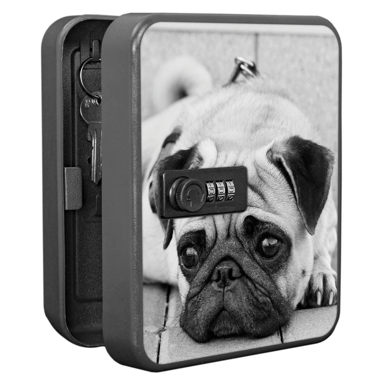 Der Schlüsselkasten ist gesamt 20x16x9,3cm groß und wiegt ca. 900g. Die komplette Schlüsselaufbewahrung besteht aus schwarzem pulverbeschichtetem Stahl und wird von uns auf der Front mit einer Motivfolie kaschiert.