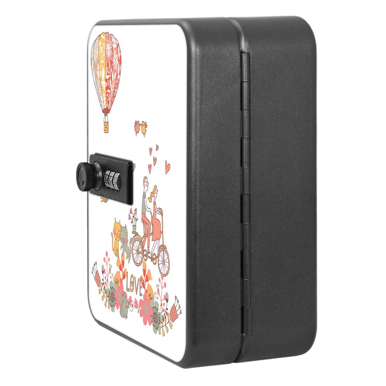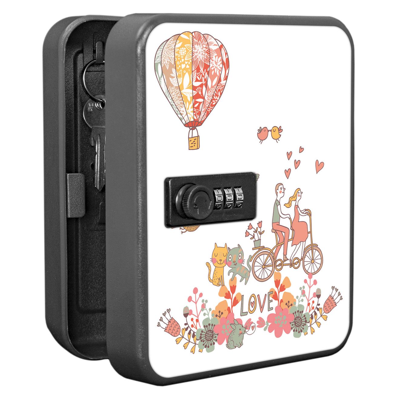 Der Schlüsselkasten ist gesamt 20x16x9,3cm groß und wiegt ca. 900g. Die komplette Schlüsselaufbewahrung besteht aus schwarzem pulverbeschichtetem Stahl und wird von uns auf der Front mit einer Motivfolie kaschiert.