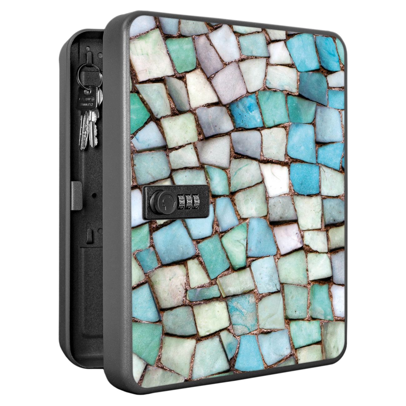 Schlüsselkasten abschließbar Motiv Mosaik Blau