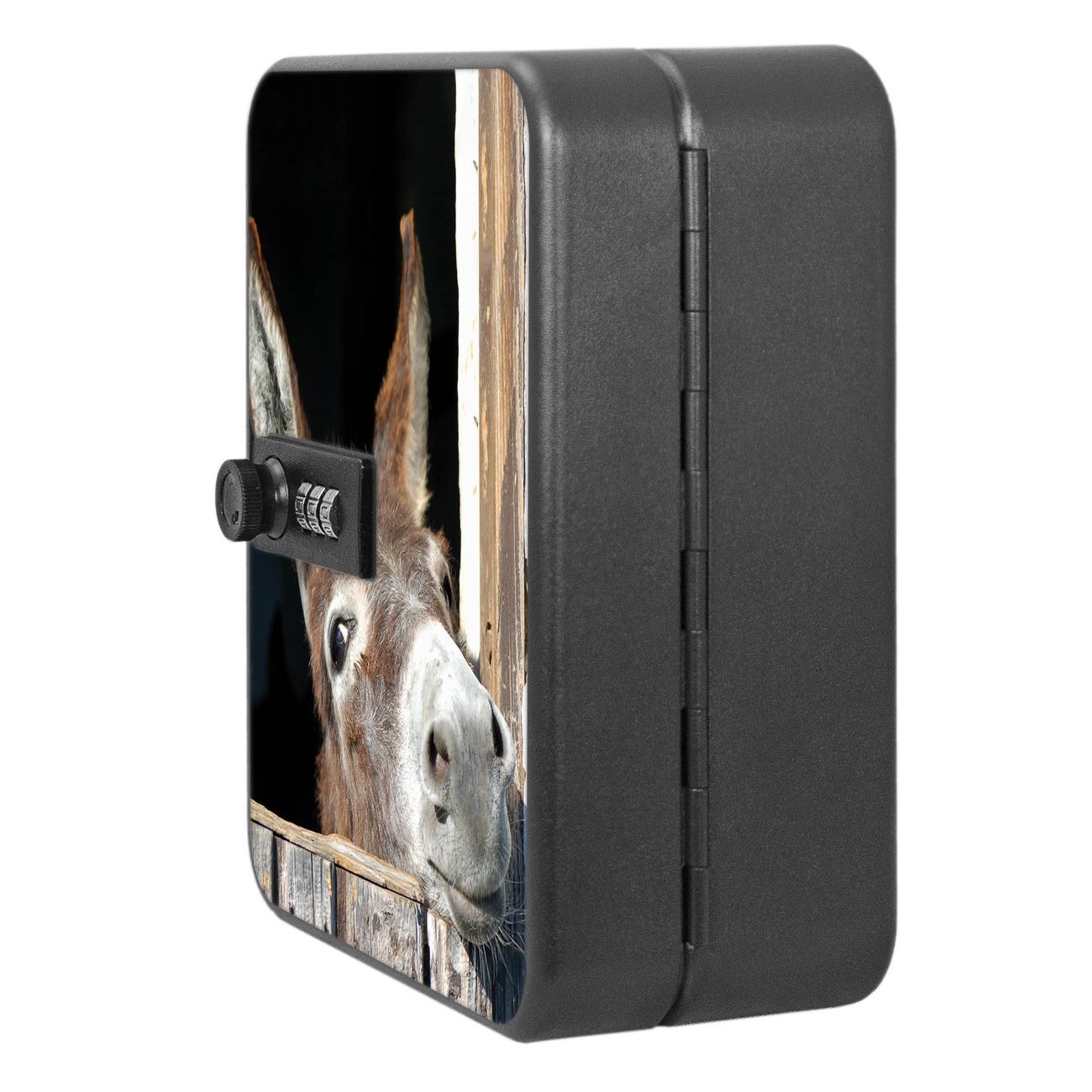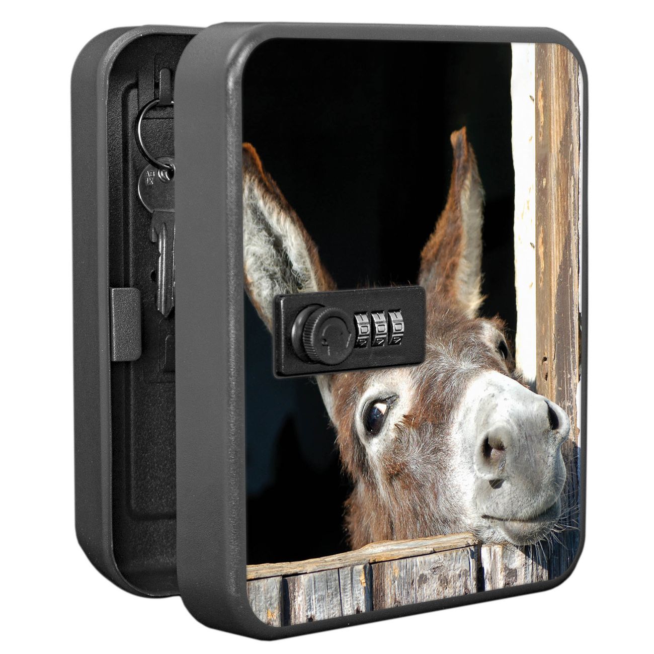 Der Schlüsselkasten ist gesamt 20x16x9,3cm groß und wiegt ca. 900g. Die komplette Schlüsselaufbewahrung besteht aus schwarzem pulverbeschichtetem Stahl und wird von uns auf der Front mit einer Motivfolie kaschiert.
