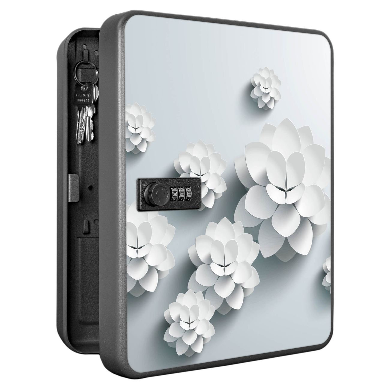 Schlüsselkasten abschließbar Motiv Papier Lotus