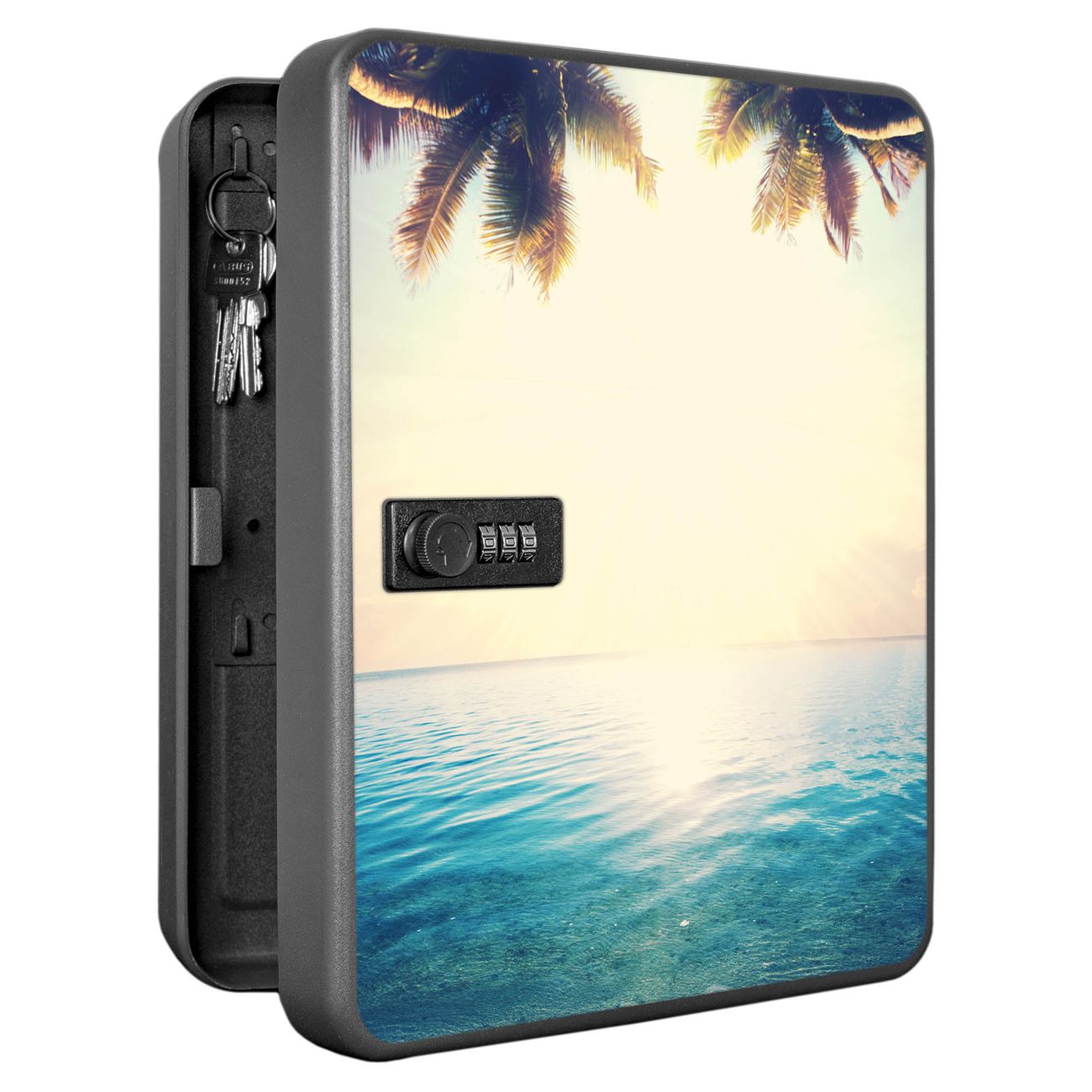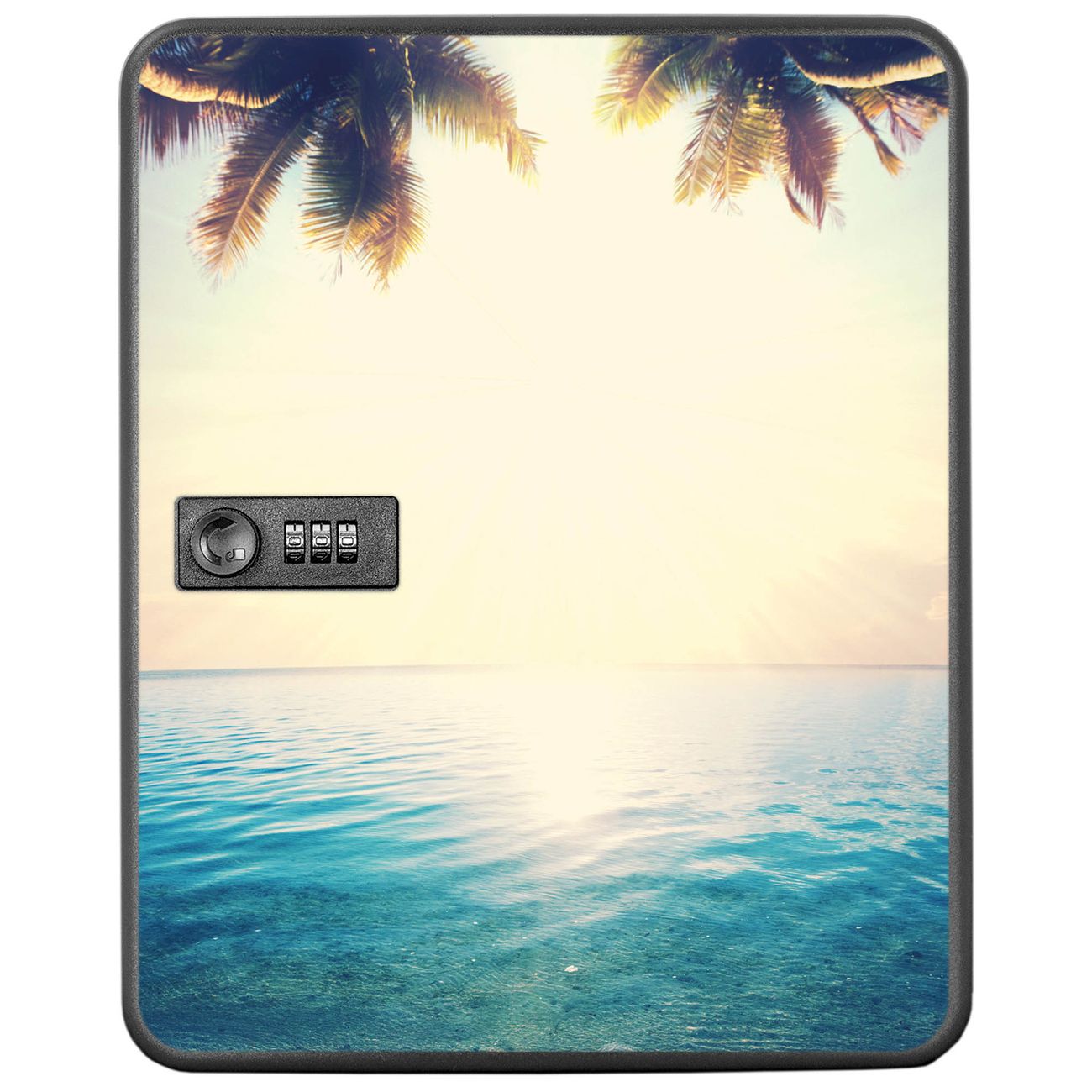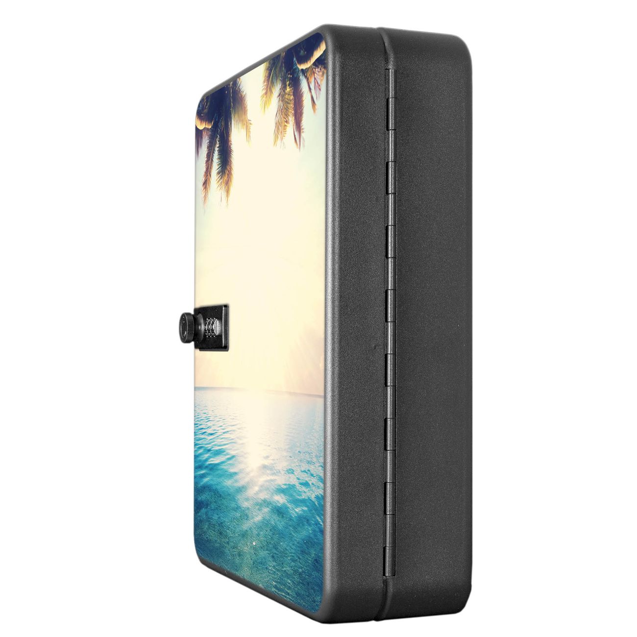 Der Schlüsselkasten ist gesamt 30x24x9,3cm groß und wiegt ca. 1500g. Die komplette Schlüsselaufbewahrung besteht aus schwarzem pulverbeschichtetem Stahl und wird von uns auf der Front mit einer Motivfolie kaschiert.
