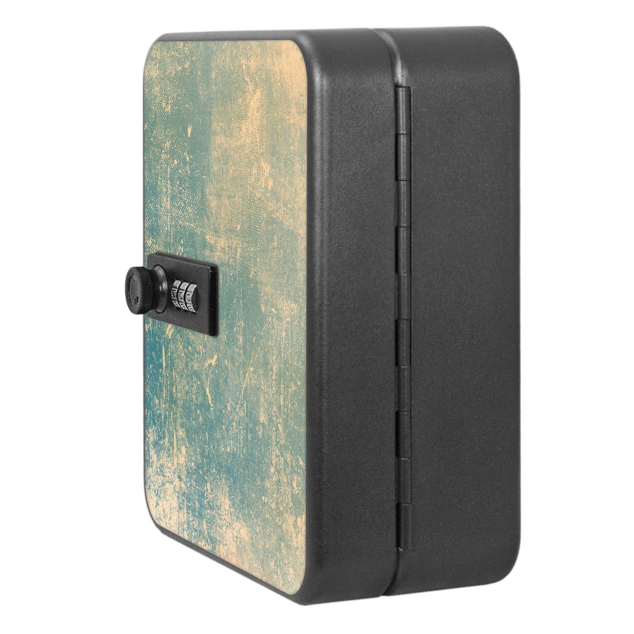 Der Schlüsselkasten ist gesamt 20x16x9,3cm groß und wiegt ca. 900g. Die komplette Schlüsselaufbewahrung besteht aus schwarzem pulverbeschichtetem Stahl und wird von uns auf der Front mit einer Motivfolie kaschiert.