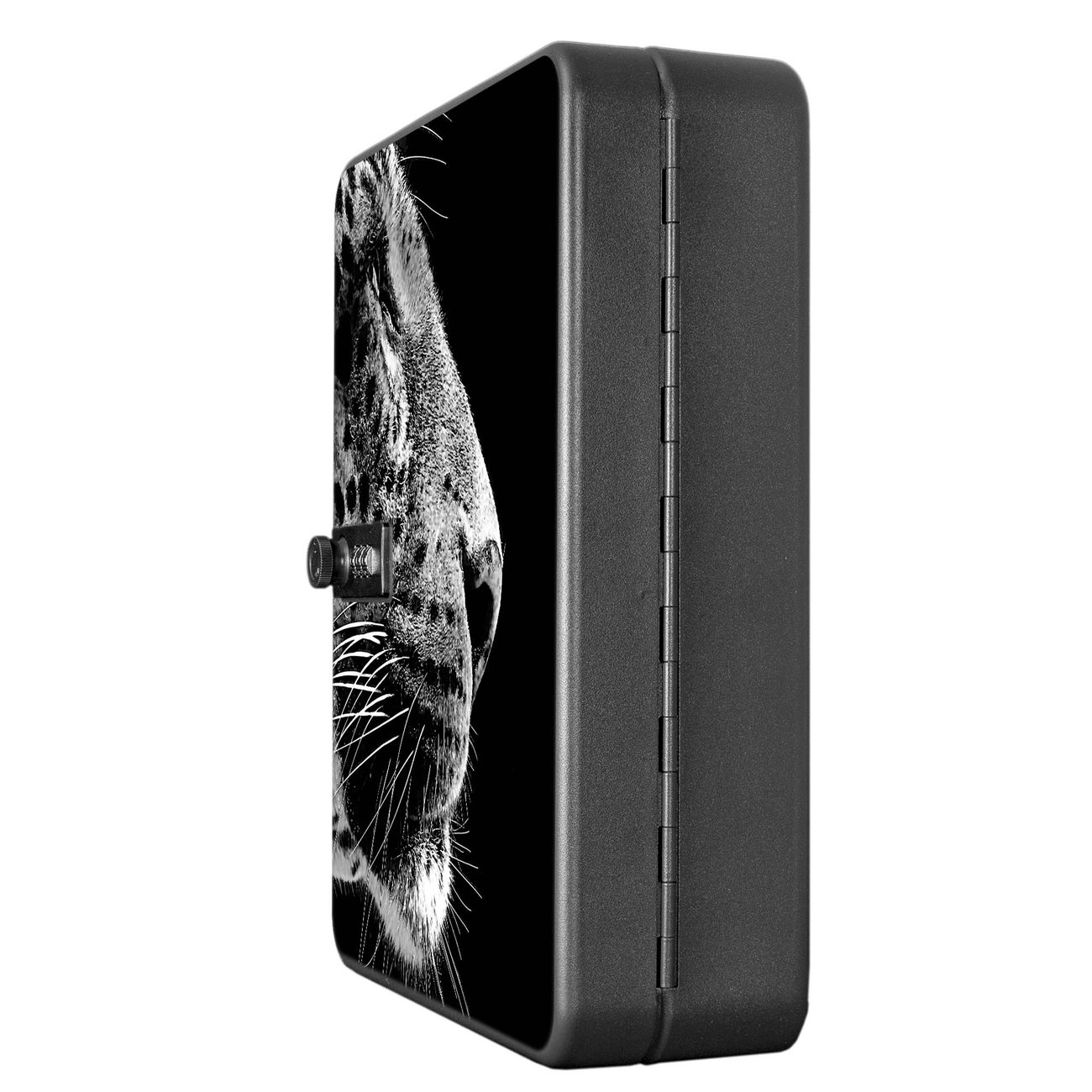 Der Schlüsselkasten ist gesamt 30x24x9,3cm groß und wiegt ca. 1500g. Die komplette Schlüsselaufbewahrung besteht aus schwarzem pulverbeschichtetem Stahl und wird von uns auf der Front mit einer Motivfolie kaschiert.