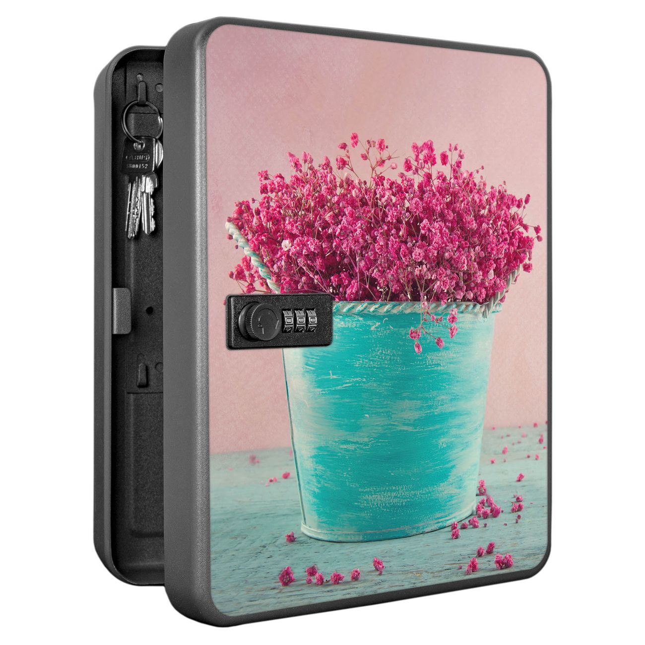 Schlüsselkasten abschließbar Motiv Pinke Trockenblumen