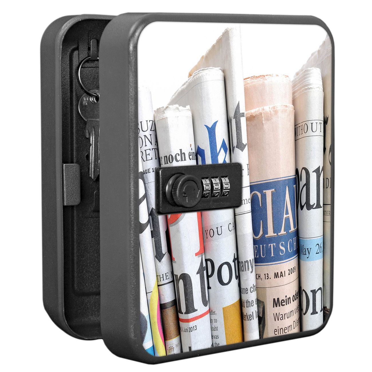 Der Schlüsselkasten ist gesamt 20x16x9,3cm groß und wiegt ca. 900g. Die komplette Schlüsselaufbewahrung besteht aus schwarzem pulverbeschichtetem Stahl und wird von uns auf der Front mit einer Motivfolie kaschiert.