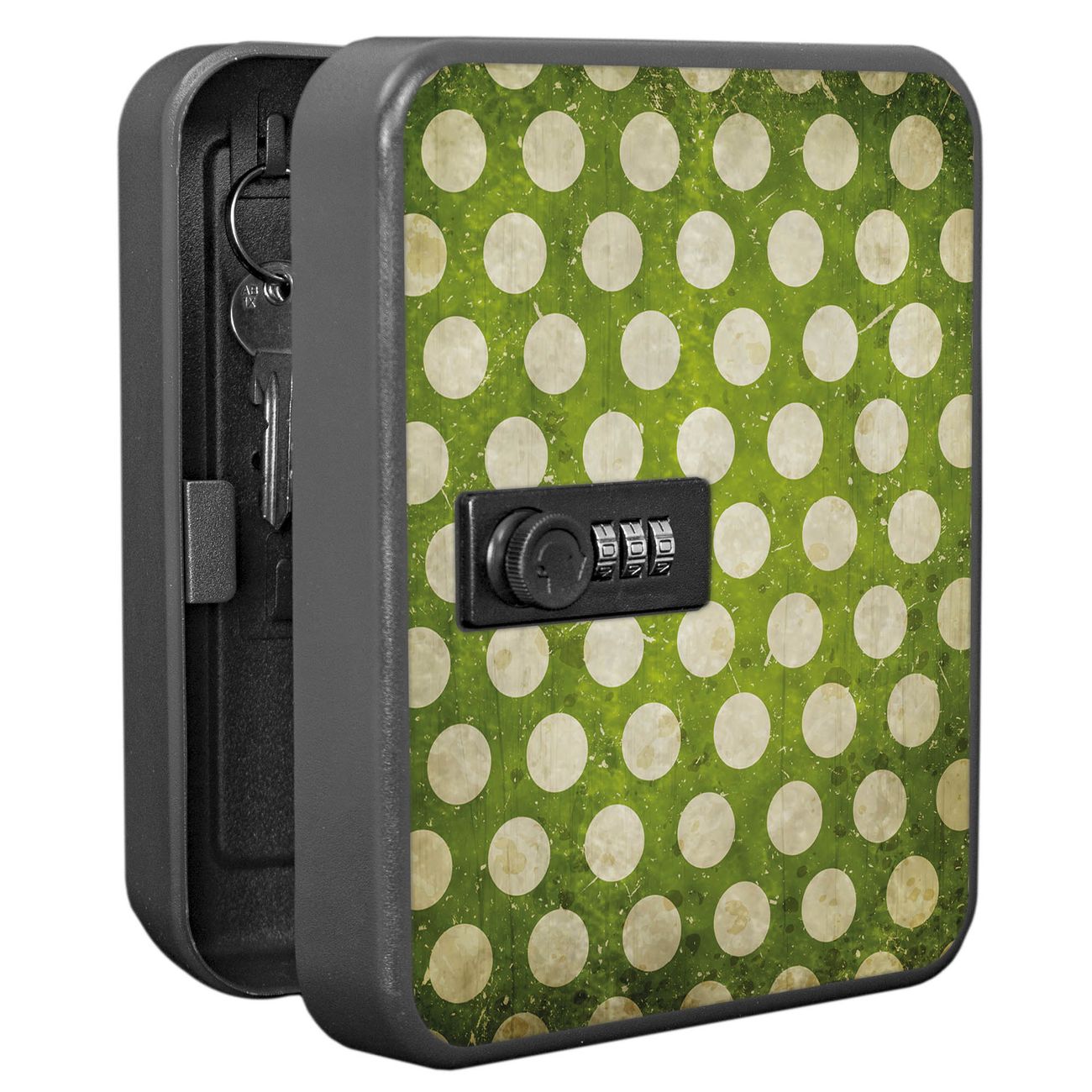 Schlüsselkasten abschließbar Motiv Punkte Grün Vintage