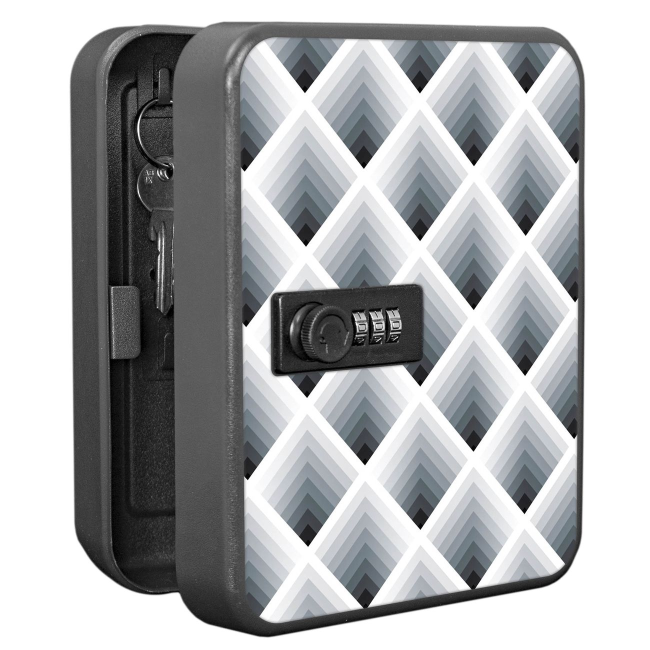 Schlüsselkasten abschließbar Motiv Raster 3D Grau