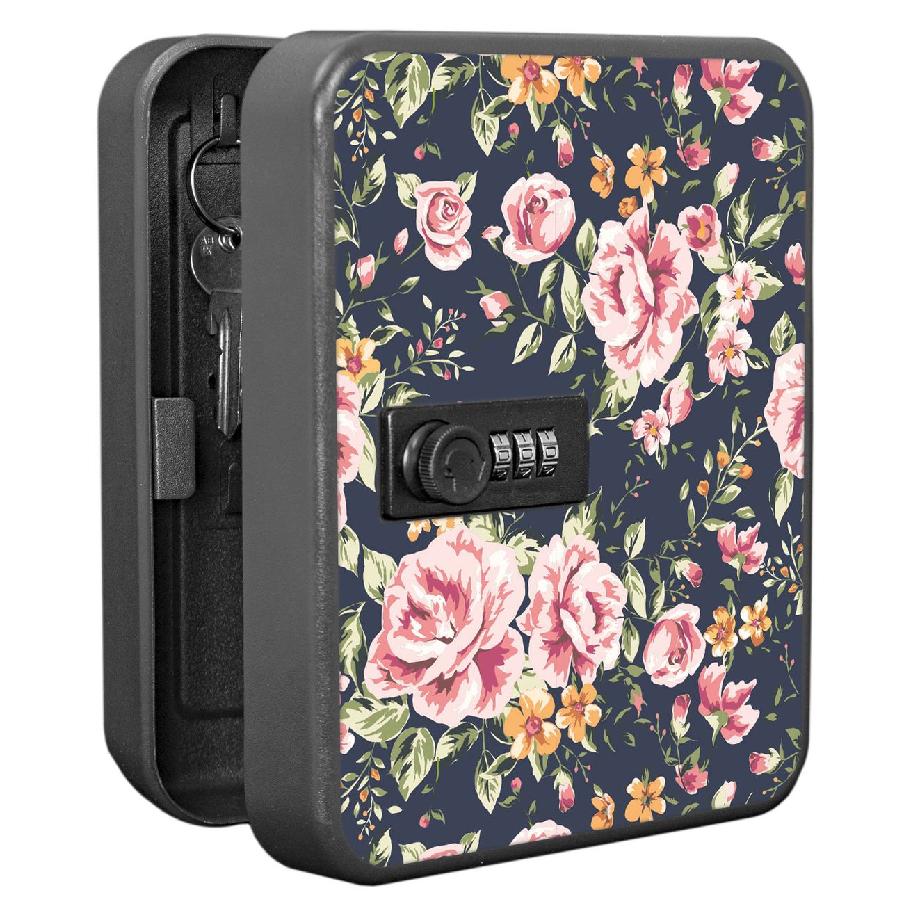 Schlüsselkasten abschließbar Motiv Rosen Auf Anthrazit