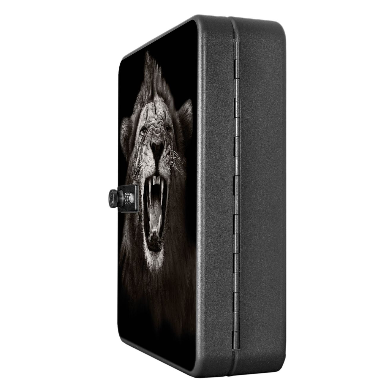 Der Schlüsselkasten ist gesamt 30x24x9,3cm groß und wiegt ca. 1500g. Die komplette Schlüsselaufbewahrung besteht aus schwarzem pulverbeschichtetem Stahl und wird von uns auf der Front mit einer Motivfolie kaschiert.