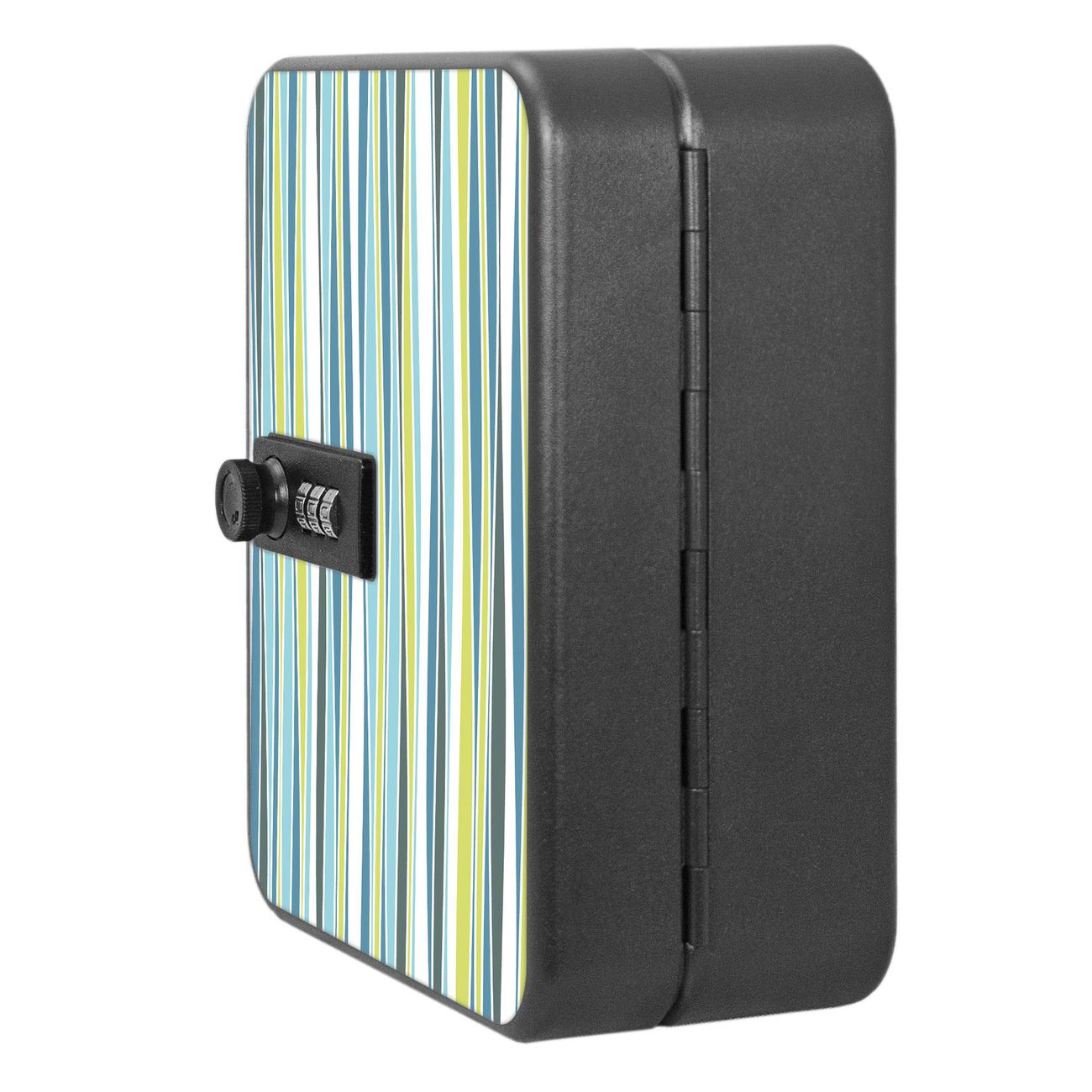 Der Schlüsselkasten ist gesamt 20x16x9,3cm groß und wiegt ca. 900g. Die komplette Schlüsselaufbewahrung besteht aus schwarzem pulverbeschichtetem Stahl und wird von uns auf der Front mit einer Motivfolie kaschiert.