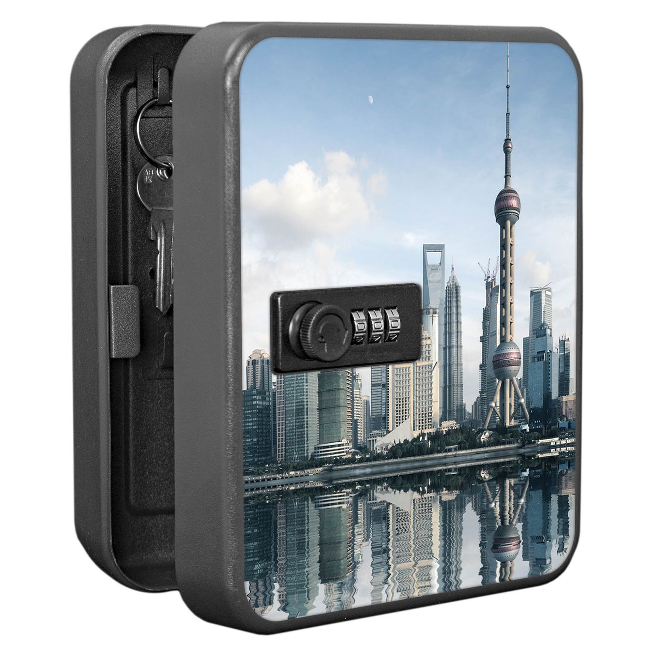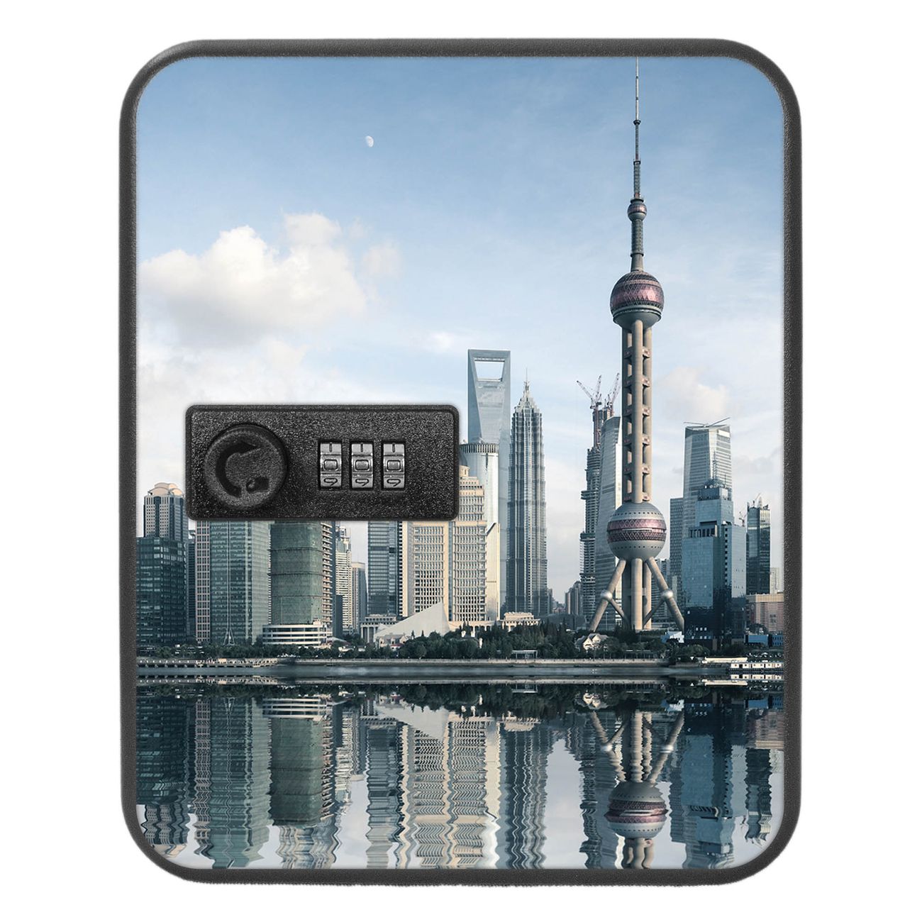 Der Schlüsselkasten ist gesamt 20x16x9,3cm groß und wiegt ca. 900g. Die komplette Schlüsselaufbewahrung besteht aus schwarzem pulverbeschichtetem Stahl und wird von uns auf der Front mit einer Motivfolie kaschiert.