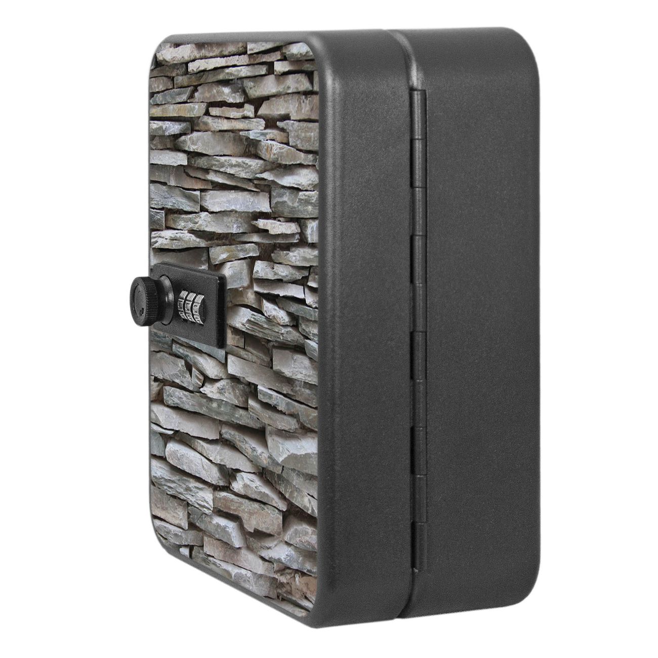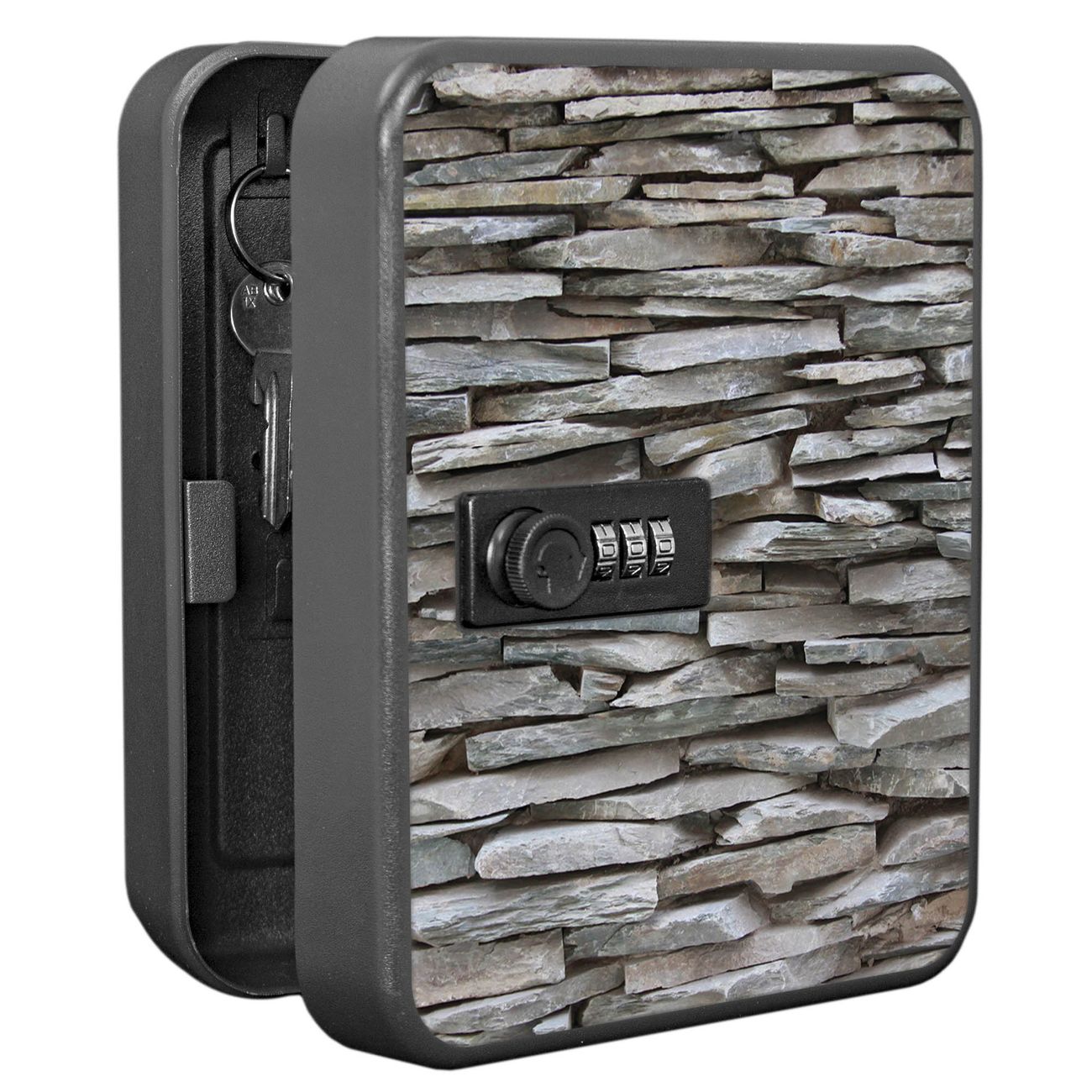 Der Schlüsselkasten ist gesamt 20x16x9,3cm groß und wiegt ca. 900g. Die komplette Schlüsselaufbewahrung besteht aus schwarzem pulverbeschichtetem Stahl und wird von uns auf der Front mit einer Motivfolie kaschiert.