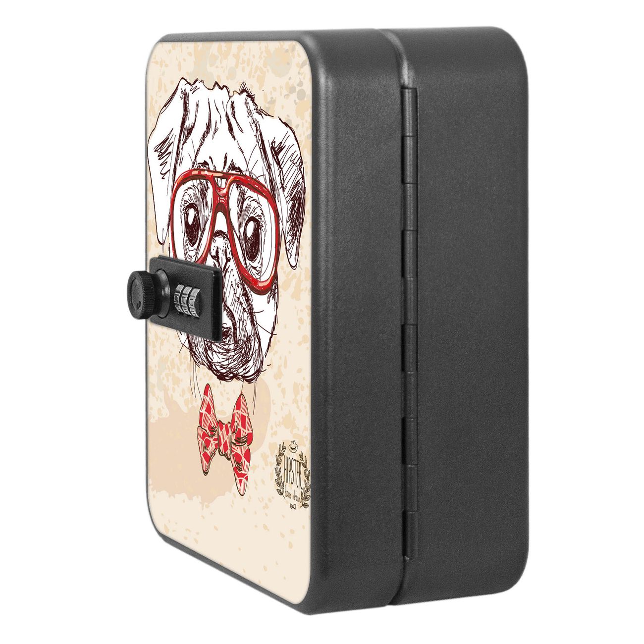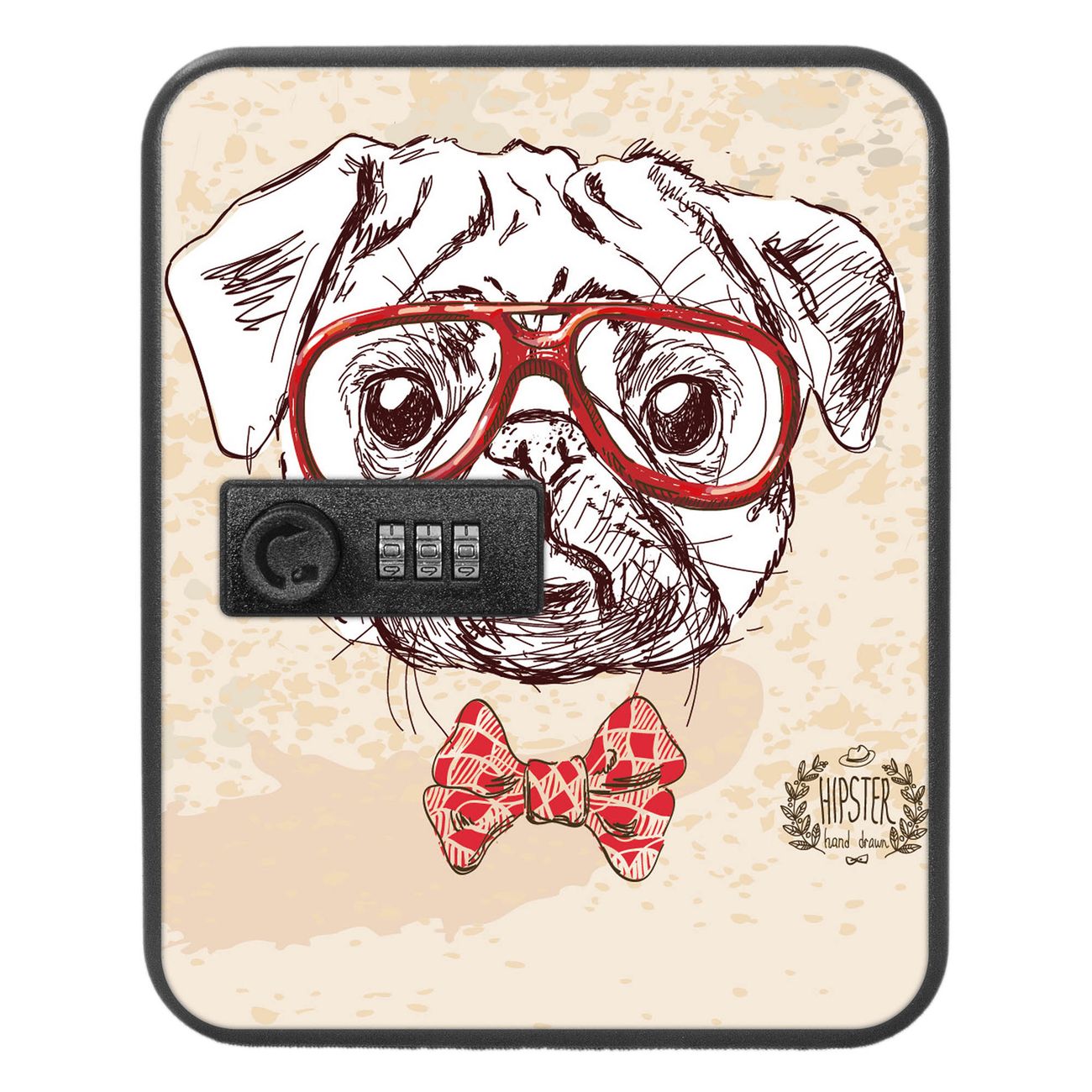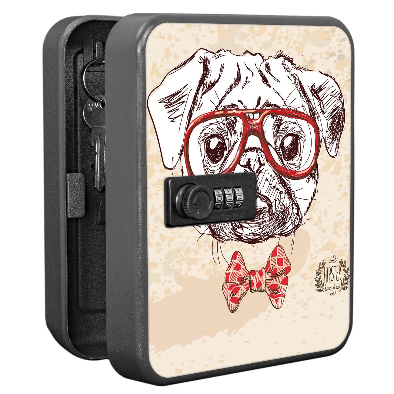 Der Schlüsselkasten ist gesamt 20x16x9,3cm groß und wiegt ca. 900g. Die komplette Schlüsselaufbewahrung besteht aus schwarzem pulverbeschichtetem Stahl und wird von uns auf der Front mit einer Motivfolie kaschiert.