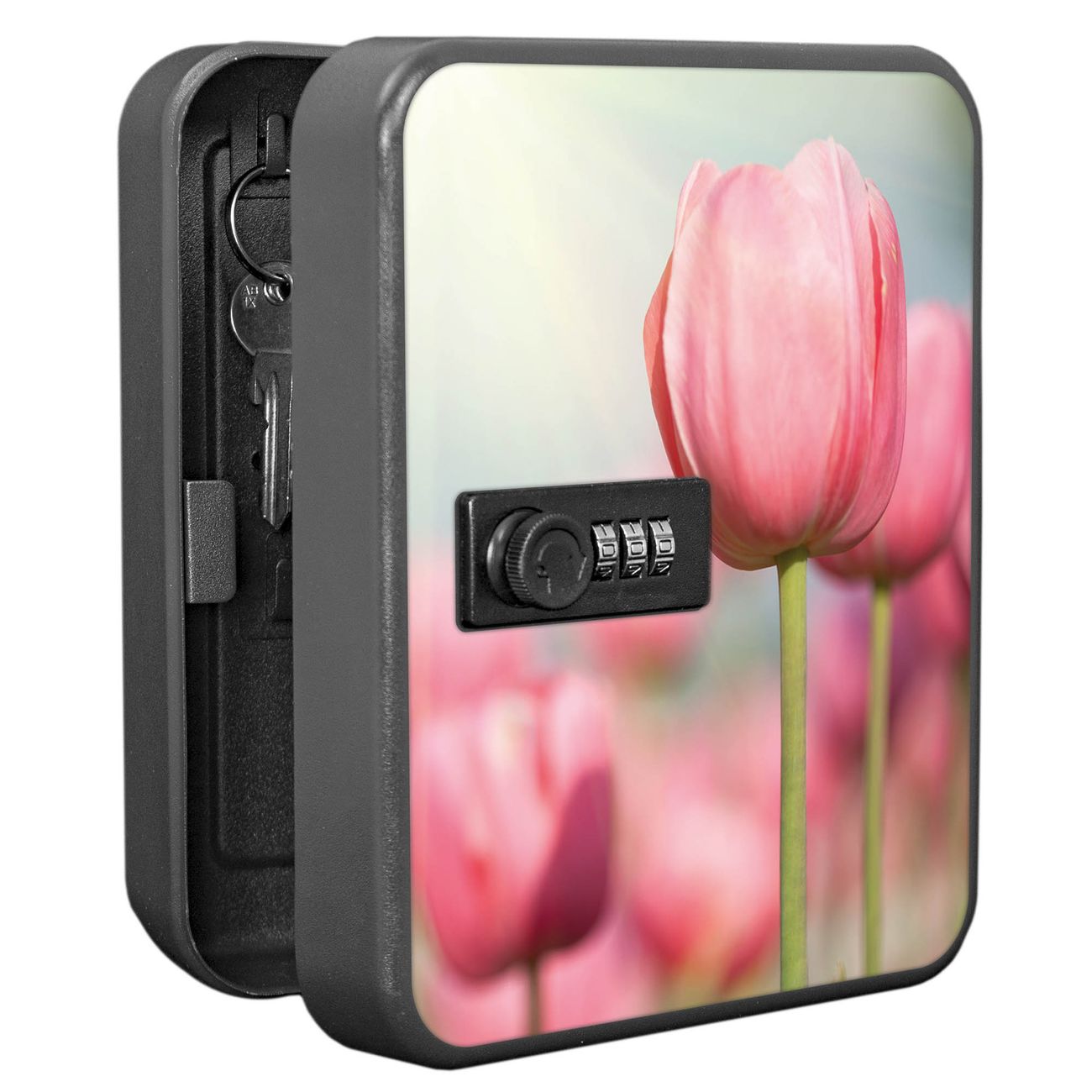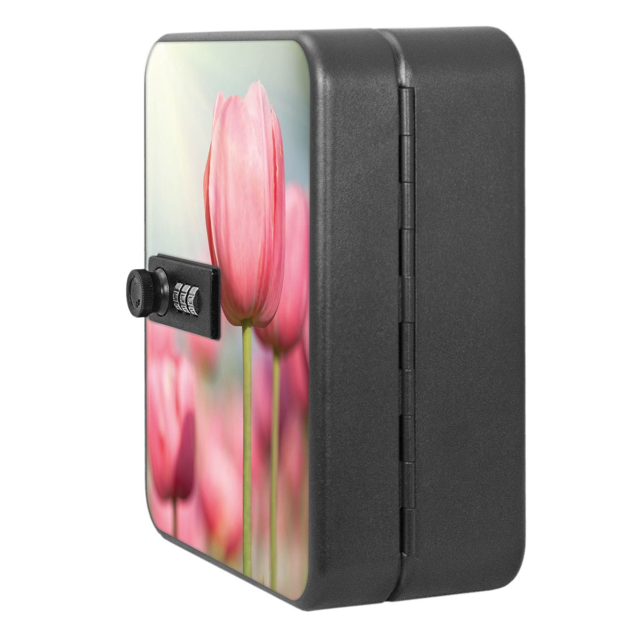 Der Schlüsselkasten ist gesamt 20x16x9,3cm groß und wiegt ca. 900g. Die komplette Schlüsselaufbewahrung besteht aus schwarzem pulverbeschichtetem Stahl und wird von uns auf der Front mit einer Motivfolie kaschiert.