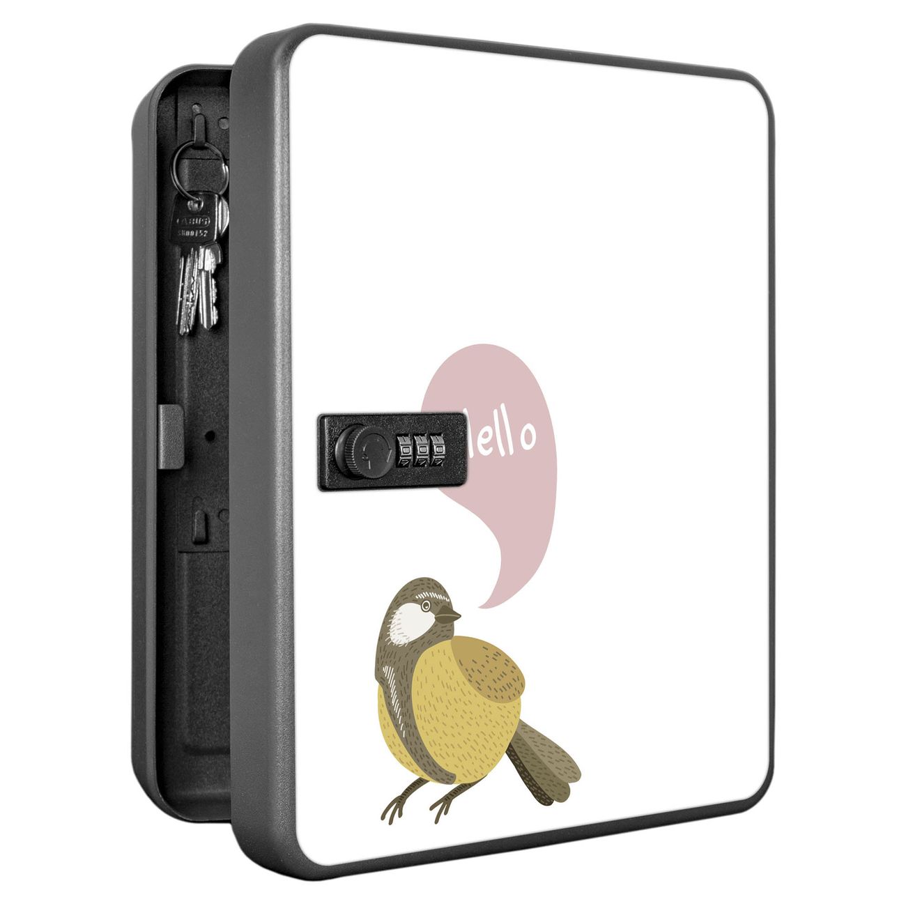 Schlüsselkasten abschließbar Motiv Vogel mit Sprechblase