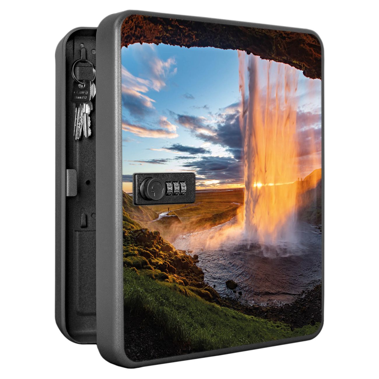 Schlüsselkasten abschließbar Motiv Wasserfall im Sonnenlicht