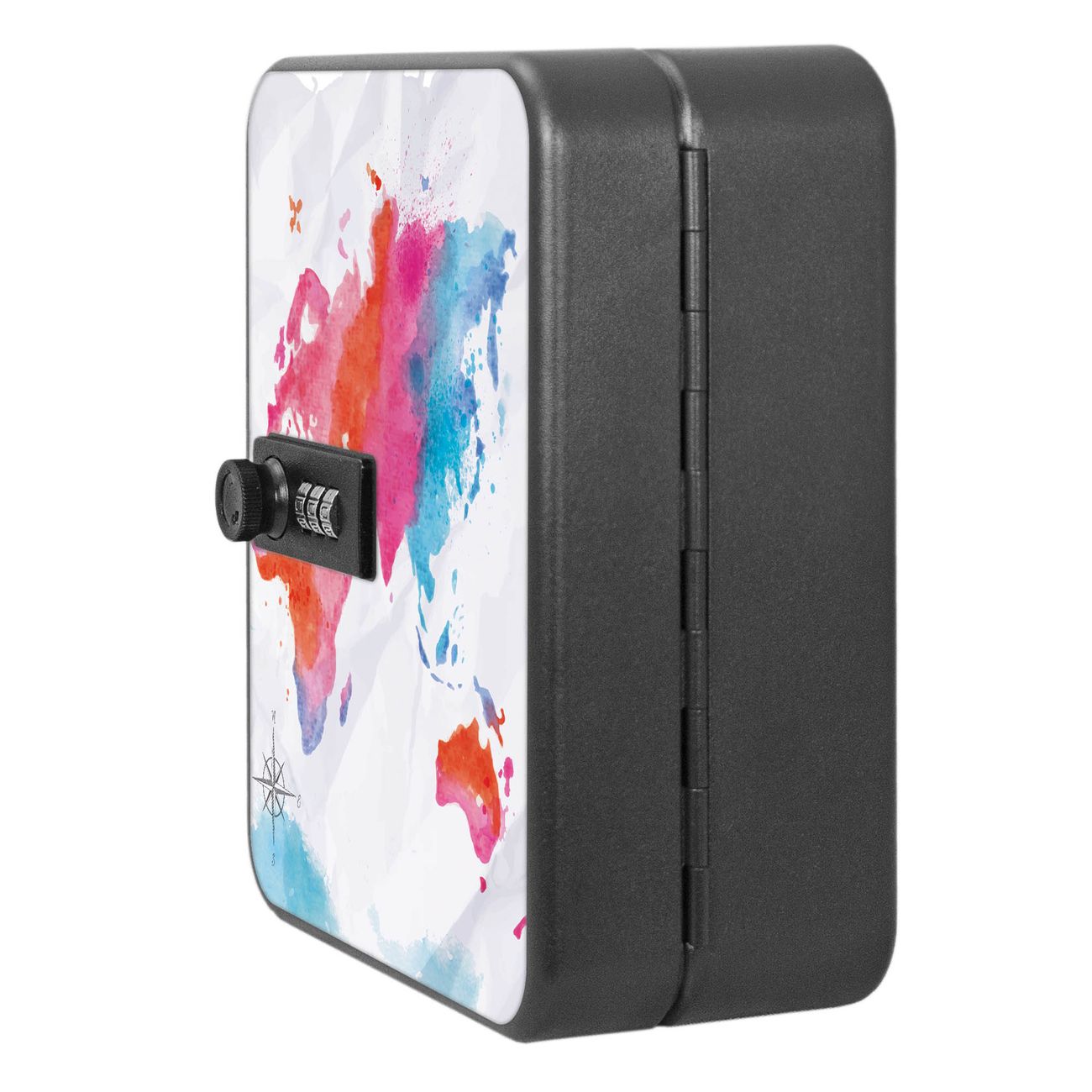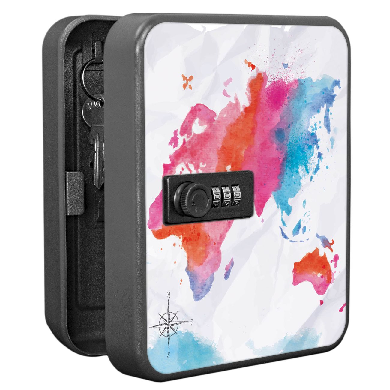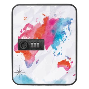 Schlüsselkasten abschließbar Motiv Weltkarte pastell