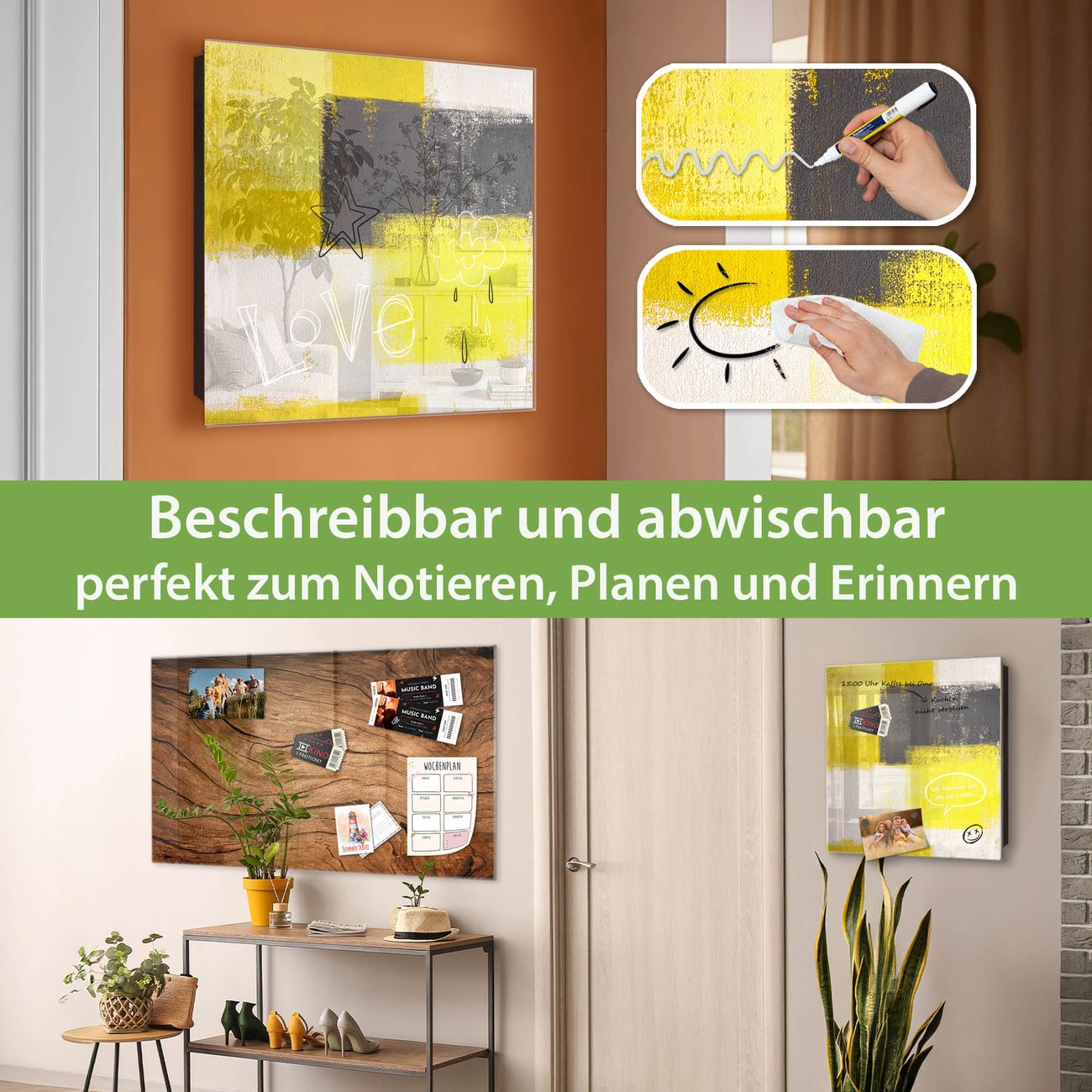 ✅ Magnetisch und mit Kreidestift beschreibbar, gehärtetes Glas, rechts angeschlagene TürOrdnung und Design in einem