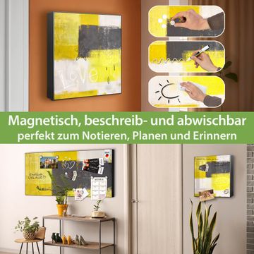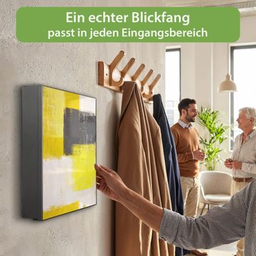Bringe Ordnung und Eleganz in deinen Eingangsbereich mit dem banjado Schlüsselkasten Motiv Motiv Abstrakt Gelb. Die moderne Schlüsselbox kombiniert funktionales Design mit hochwertiger Verarbeitung und wird so zu einem echten Hingucker in Flur, Büro oder Ferienwohnung. ✅ Stilvolle Schlüsselaufbewahrung mit Motiv Motiv Abstrakt Gelb Der Design-Schlüsselkasten Motiv Motiv Abstrakt Gelb bietet Platz für bis zu 32 Schlüssel, die auf 4 stabilen Reihen mit je 8 Haken übersichtlich verstaut werden. Mit seinen kompakten Maßen von 30 x 30 x 5 cm passt die Schlüsselbox perfekt auch in kleinere Räume. Der schwarz lackierte Stahlkorpus mit links angeschlagenem Türscharnier harmoniert mit gedruckten Folie auf der Front und fügt sich nahtlos in jedes Wohnambiente ein. Ob als Schlüsselorganizer für Zuhause oder als praktische Lösung für Büros, Praxen und Gewerbe, der banjado Schlüsselkasten sorgt für Ordnung und Übersicht. Dank der magnetischen, mit Kreidestiften beschreibbaren Folie auf der Front kannst du Notizen anheften oder Termine direkt auf der Oberfläche festhalten. Die Schlüsselbox Motiv Motiv Abstrakt Gelb zur Wandmontage wird inklusive Befestigungsmaterial geliefert und ist schnell angebracht. So hast du deine Schlüssel jederzeit griffbereit und zugleich stilvoll verstaut. Mit diesem banjado Schlüsselkasten Motiv Motiv Abstrakt Gelb kombinierst du praktische Aufbewahrung mit stilvollem Wohndesign. Ob privat oder geschäftlich, die Schlüsselbox sorgt für mehr Ordnung, Übersicht und ein wohnliches Ambiente.Vorteile im Überblick