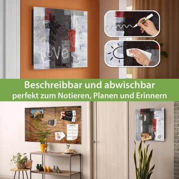 Bringe Ordnung und Eleganz in deinen Eingangsbereich mit dem banjado Schlüsselkasten Motiv Motiv Abstrakt Rot. Die moderne Schlüsselbox kombiniert funktionales Design mit hochwertiger Verarbeitung und wird so zu einem echten Hingucker in Flur, Büro oder Ferienwohnung. ✅ Stilvolle Schlüsselaufbewahrung mit Glasfront im Motiv Motiv Abstrakt Rot Der Design-Schlüsselkasten Motiv Motiv Abstrakt Rot bietet Platz für bis zu 50 Schlüssel, die auf 5 stabilen Reihen mit je 10 Haken übersichtlich verstaut werden. Mit seinen kompakten Maßen von 30 x 30 x 5 cm passt die Schlüsselbox perfekt auch in kleinere Räume. Der schwarz lackierte Stahlkorpus mit rechts angeschlagenem Türscharnier harmoniert mit der Glasfront und fügt sich nahtlos in jedes Wohnambiente ein. Ob als Schlüsselorganizer für Zuhause oder als praktische Lösung für Büros, Praxen und Gewerbe, der banjado Schlüsselkasten sorgt für Ordnung und Übersicht. Dank der magnetischen, mit Kreidestiften beschreibbaren Glasfront kannst du Notizen anheften oder Termine direkt auf der Oberfläche festhalten. Die Schlüsselbox Motiv Motiv Abstrakt Rot zur Wandmontage wird inklusive Befestigungsmaterial geliefert und ist schnell angebracht. So hast du deine Schlüssel jederzeit griffbereit und zugleich stilvoll verstaut. Mit diesem banjado Schlüsselkasten Motiv Motiv Abstrakt Rot kombinierst du praktische Aufbewahrung mit stilvollem Wohndesign. Ob privat oder geschäftlich, die Schlüsselbox sorgt für mehr Ordnung, Übersicht und ein wohnliches Ambiente.Vorteile im Überblick