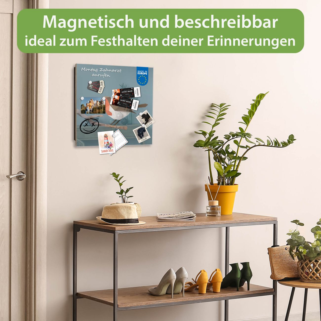 ✅ Magnetisch und mit Kreidestift beschreibbar, gehärtetes Glas, links angeschlagene TürOrdnung und Design in einem