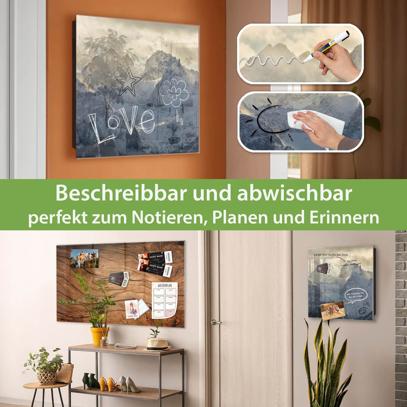 ✅ Magnetisch und mit Kreidestift beschreibbar, gehärtetes Glas, links angeschlagene TürOrdnung und Design in einem