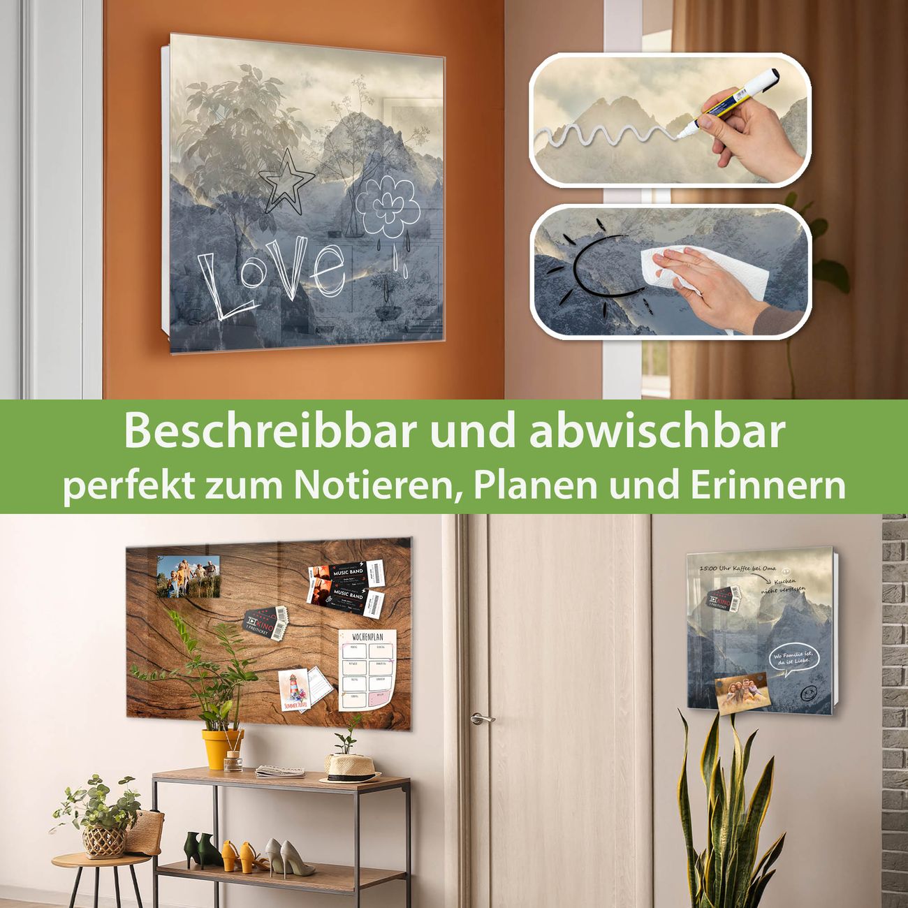 ✅ Magnetisch und mit Kreidestift beschreibbar, gehärtetes Glas, rechts angeschlagene TürOrdnung und Design in einem