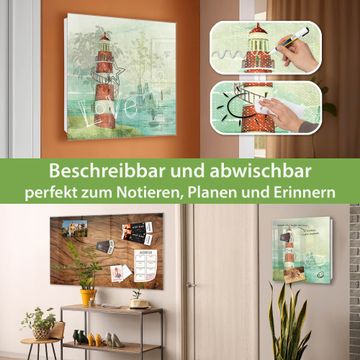 Bringe Ordnung und Eleganz in deinen Eingangsbereich mit dem banjado Schlüsselkasten Motiv Motiv Alter Leuchtturm. Die moderne Schlüsselbox kombiniert funktionales Design mit hochwertiger Verarbeitung und wird so zu einem echten Hingucker in Flur, Büro oder Ferienwohnung. ✅ Stilvolle Schlüsselaufbewahrung mit Glasfront im Motiv Motiv Alter Leuchtturm Der Design-Schlüsselkasten Motiv Motiv Alter Leuchtturm bietet Platz für bis zu 50 Schlüssel, die auf 5 stabilen Reihen mit je 10 Haken übersichtlich verstaut werden. Mit seinen kompakten Maßen von 30 x 30 x 5 cm passt die Schlüsselbox perfekt auch in kleinere Räume. Der weiß lackierte Stahlkorpus mit rechts angeschlagenem Türscharnier harmoniert mit der Glasfront und fügt sich nahtlos in jedes Wohnambiente ein. Ob als Schlüsselorganizer für Zuhause oder als praktische Lösung für Büros, Praxen und Gewerbe, der banjado Schlüsselkasten sorgt für Ordnung und Übersicht. Dank der magnetischen, mit Kreidestiften beschreibbaren Glasfront kannst du Notizen anheften oder Termine direkt auf der Oberfläche festhalten. Die Schlüsselbox Motiv Motiv Alter Leuchtturm zur Wandmontage wird inklusive Befestigungsmaterial geliefert und ist schnell angebracht. So hast du deine Schlüssel jederzeit griffbereit und zugleich stilvoll verstaut. Mit diesem banjado Schlüsselkasten Motiv Motiv Alter Leuchtturm kombinierst du praktische Aufbewahrung mit stilvollem Wohndesign. Ob privat oder geschäftlich, die Schlüsselbox sorgt für mehr Ordnung, Übersicht und ein wohnliches Ambiente.Vorteile im Überblick