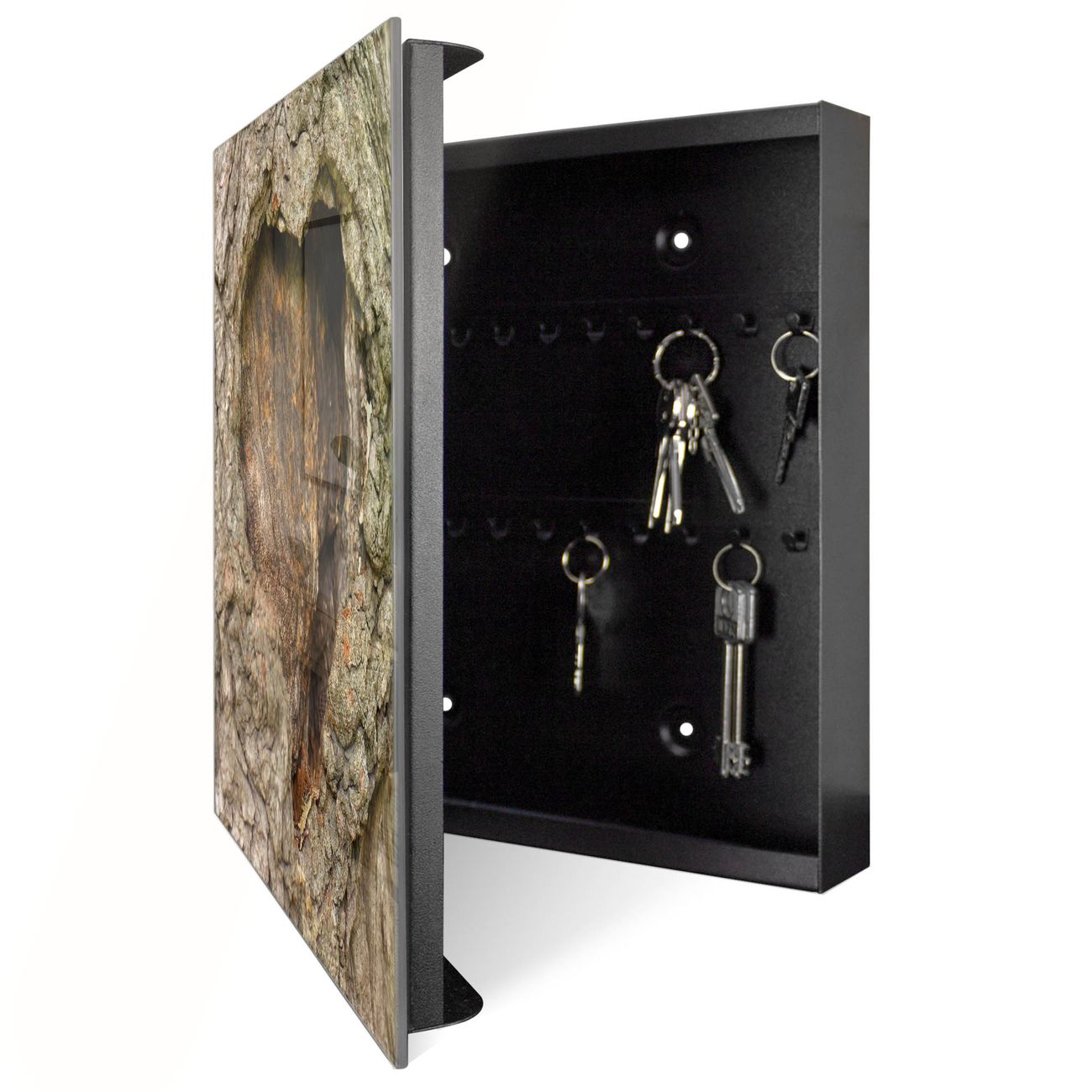 Bringe Ordnung und Eleganz in deinen Eingangsbereich mit dem banjado Schlüsselkasten Motiv Motiv Altes Herz. Die moderne Schlüsselbox kombiniert funktionales Design mit hochwertiger Verarbeitung und wird so zu einem echten Hingucker in Flur, Büro oder Ferienwohnung. ✅ Stilvolle Schlüsselaufbewahrung mit Glasfront im Motiv Motiv Altes Herz Der Design-Schlüsselkasten Motiv Motiv Altes Herz bietet Platz für bis zu 50 Schlüssel, die auf 5 stabilen Reihen mit je 10 Haken übersichtlich verstaut werden. Mit seinen kompakten Maßen von 30 x 30 x 5 cm passt die Schlüsselbox perfekt auch in kleinere Räume. Der schwarz lackierte Stahlkorpus mit rechts angeschlagenem Türscharnier harmoniert mit der Glasfront und fügt sich nahtlos in jedes Wohnambiente ein. Ob als Schlüsselorganizer für Zuhause oder als praktische Lösung für Büros, Praxen und Gewerbe, der banjado Schlüsselkasten sorgt für Ordnung und Übersicht. Dank der magnetischen, mit Kreidestiften beschreibbaren Glasfront kannst du Notizen anheften oder Termine direkt auf der Oberfläche festhalten. Die Schlüsselbox Motiv Motiv Altes Herz zur Wandmontage wird inklusive Befestigungsmaterial geliefert und ist schnell angebracht. So hast du deine Schlüssel jederzeit griffbereit und zugleich stilvoll verstaut. Mit diesem banjado Schlüsselkasten Motiv Motiv Altes Herz kombinierst du praktische Aufbewahrung mit stilvollem Wohndesign. Ob privat oder geschäftlich, die Schlüsselbox sorgt für mehr Ordnung, Übersicht und ein wohnliches Ambiente.Vorteile im Überblick