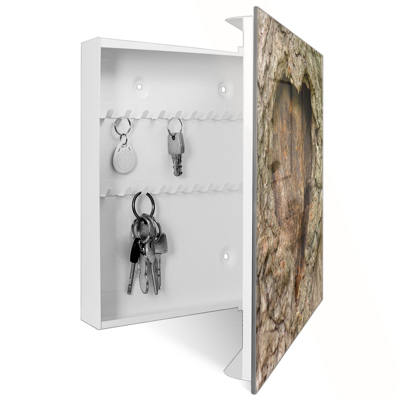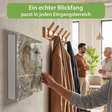 Bringe Ordnung und Eleganz in deinen Eingangsbereich mit dem banjado Schlüsselkasten Motiv Motiv Altes Herz. Die moderne Schlüsselbox kombiniert funktionales Design mit hochwertiger Verarbeitung und wird so zu einem echten Hingucker in Flur, Büro oder Ferienwohnung. ✅ Stilvolle Schlüsselaufbewahrung mit Glasfront im Motiv Motiv Altes Herz Der Design-Schlüsselkasten Motiv Motiv Altes Herz bietet Platz für bis zu 50 Schlüssel, die auf 5 stabilen Reihen mit je 10 Haken übersichtlich verstaut werden. Mit seinen kompakten Maßen von 30 x 30 x 5 cm passt die Schlüsselbox perfekt auch in kleinere Räume. Der weiß lackierte Stahlkorpus mit rechts angeschlagenem Türscharnier harmoniert mit der Glasfront und fügt sich nahtlos in jedes Wohnambiente ein. Ob als Schlüsselorganizer für Zuhause oder als praktische Lösung für Büros, Praxen und Gewerbe, der banjado Schlüsselkasten sorgt für Ordnung und Übersicht. Dank der magnetischen, mit Kreidestiften beschreibbaren Glasfront kannst du Notizen anheften oder Termine direkt auf der Oberfläche festhalten. Die Schlüsselbox Motiv Motiv Altes Herz zur Wandmontage wird inklusive Befestigungsmaterial geliefert und ist schnell angebracht. So hast du deine Schlüssel jederzeit griffbereit und zugleich stilvoll verstaut. Mit diesem banjado Schlüsselkasten Motiv Motiv Altes Herz kombinierst du praktische Aufbewahrung mit stilvollem Wohndesign. Ob privat oder geschäftlich, die Schlüsselbox sorgt für mehr Ordnung, Übersicht und ein wohnliches Ambiente.Vorteile im Überblick