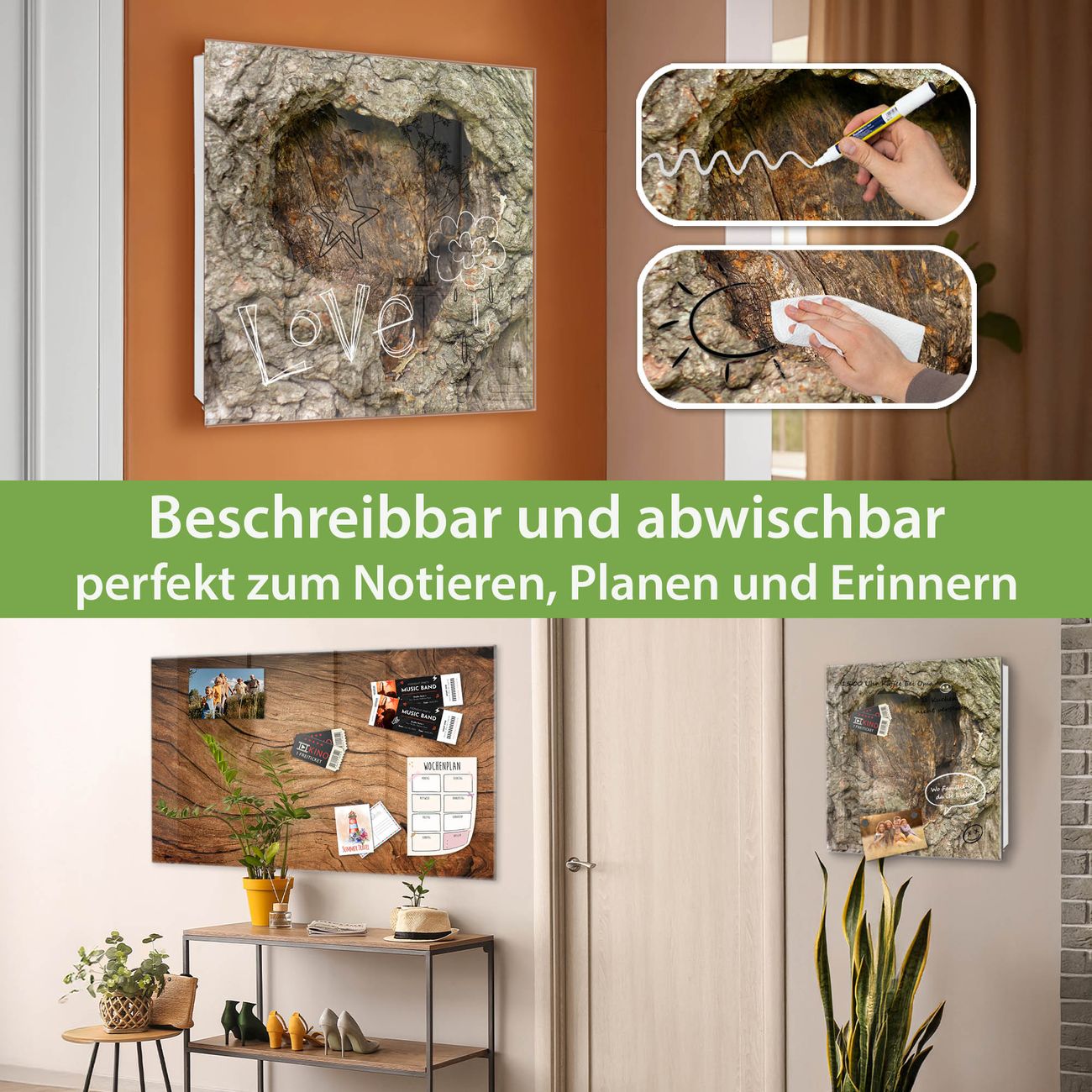 ✅ Magnetisch und mit Kreidestift beschreibbar, gehärtetes Glas, rechts angeschlagene TürOrdnung und Design in einem