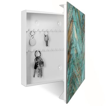 Schlüsselkasten Glas Motiv Altes Holz Blau