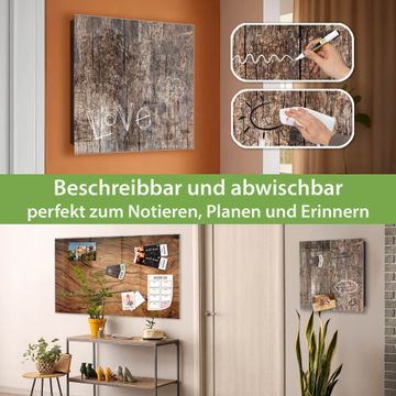 Bringe Ordnung und Eleganz in deinen Eingangsbereich mit dem banjado Schlüsselkasten Motiv Motiv Altes Holz. Die moderne Schlüsselbox kombiniert funktionales Design mit hochwertiger Verarbeitung und wird so zu einem echten Hingucker in Flur, Büro oder Ferienwohnung. ✅ Stilvolle Schlüsselaufbewahrung mit Glasfront im Motiv Motiv Altes Holz Der Design-Schlüsselkasten Motiv Motiv Altes Holz bietet Platz für bis zu 50 Schlüssel, die auf 5 stabilen Reihen mit je 10 Haken übersichtlich verstaut werden. Mit seinen kompakten Maßen von 30 x 30 x 5 cm passt die Schlüsselbox perfekt auch in kleinere Räume. Der schwarz lackierte Stahlkorpus mit rechts angeschlagenem Türscharnier harmoniert mit der Glasfront und fügt sich nahtlos in jedes Wohnambiente ein. Ob als Schlüsselorganizer für Zuhause oder als praktische Lösung für Büros, Praxen und Gewerbe, der banjado Schlüsselkasten sorgt für Ordnung und Übersicht. Dank der magnetischen, mit Kreidestiften beschreibbaren Glasfront kannst du Notizen anheften oder Termine direkt auf der Oberfläche festhalten. Die Schlüsselbox Motiv Motiv Altes Holz zur Wandmontage wird inklusive Befestigungsmaterial geliefert und ist schnell angebracht. So hast du deine Schlüssel jederzeit griffbereit und zugleich stilvoll verstaut. Mit diesem banjado Schlüsselkasten Motiv Motiv Altes Holz kombinierst du praktische Aufbewahrung mit stilvollem Wohndesign. Ob privat oder geschäftlich, die Schlüsselbox sorgt für mehr Ordnung, Übersicht und ein wohnliches Ambiente.Vorteile im Überblick