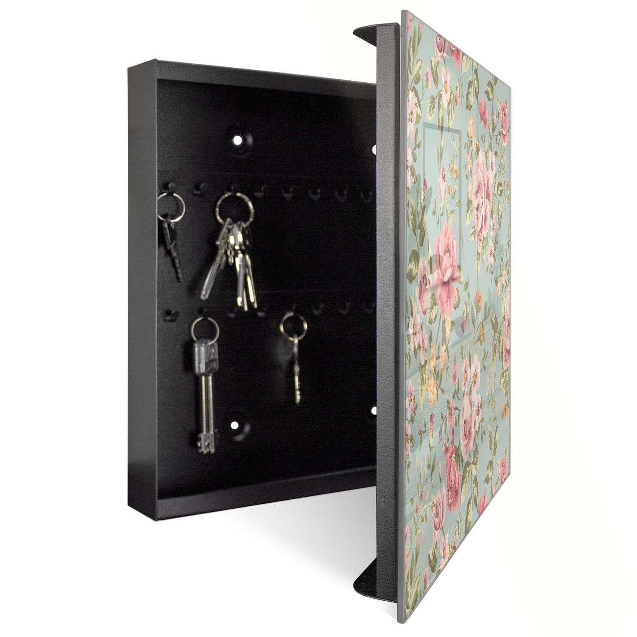Bringe Ordnung und Eleganz in deinen Eingangsbereich mit dem banjado Schlüsselkasten Motiv Motiv Altrosa Blume. Die moderne Schlüsselbox kombiniert funktionales Design mit hochwertiger Verarbeitung und wird so zu einem echten Hingucker in Flur, Büro oder Ferienwohnung. ✅ Stilvolle Schlüsselaufbewahrung mit Glasfront im Motiv Motiv Altrosa Blume Der Design-Schlüsselkasten Motiv Motiv Altrosa Blume bietet Platz für bis zu 50 Schlüssel, die auf 5 stabilen Reihen mit je 10 Haken übersichtlich verstaut werden. Mit seinen kompakten Maßen von 30 x 30 x 5 cm passt die Schlüsselbox perfekt auch in kleinere Räume. Der schwarz lackierte Stahlkorpus mit rechts angeschlagenem Türscharnier harmoniert mit der Glasfront und fügt sich nahtlos in jedes Wohnambiente ein. Ob als Schlüsselorganizer für Zuhause oder als praktische Lösung für Büros, Praxen und Gewerbe, der banjado Schlüsselkasten sorgt für Ordnung und Übersicht. Dank der magnetischen, mit Kreidestiften beschreibbaren Glasfront kannst du Notizen anheften oder Termine direkt auf der Oberfläche festhalten. Die Schlüsselbox Motiv Motiv Altrosa Blume zur Wandmontage wird inklusive Befestigungsmaterial geliefert und ist schnell angebracht. So hast du deine Schlüssel jederzeit griffbereit und zugleich stilvoll verstaut. Mit diesem banjado Schlüsselkasten Motiv Motiv Altrosa Blume kombinierst du praktische Aufbewahrung mit stilvollem Wohndesign. Ob privat oder geschäftlich, die Schlüsselbox sorgt für mehr Ordnung, Übersicht und ein wohnliches Ambiente.Vorteile im Überblick