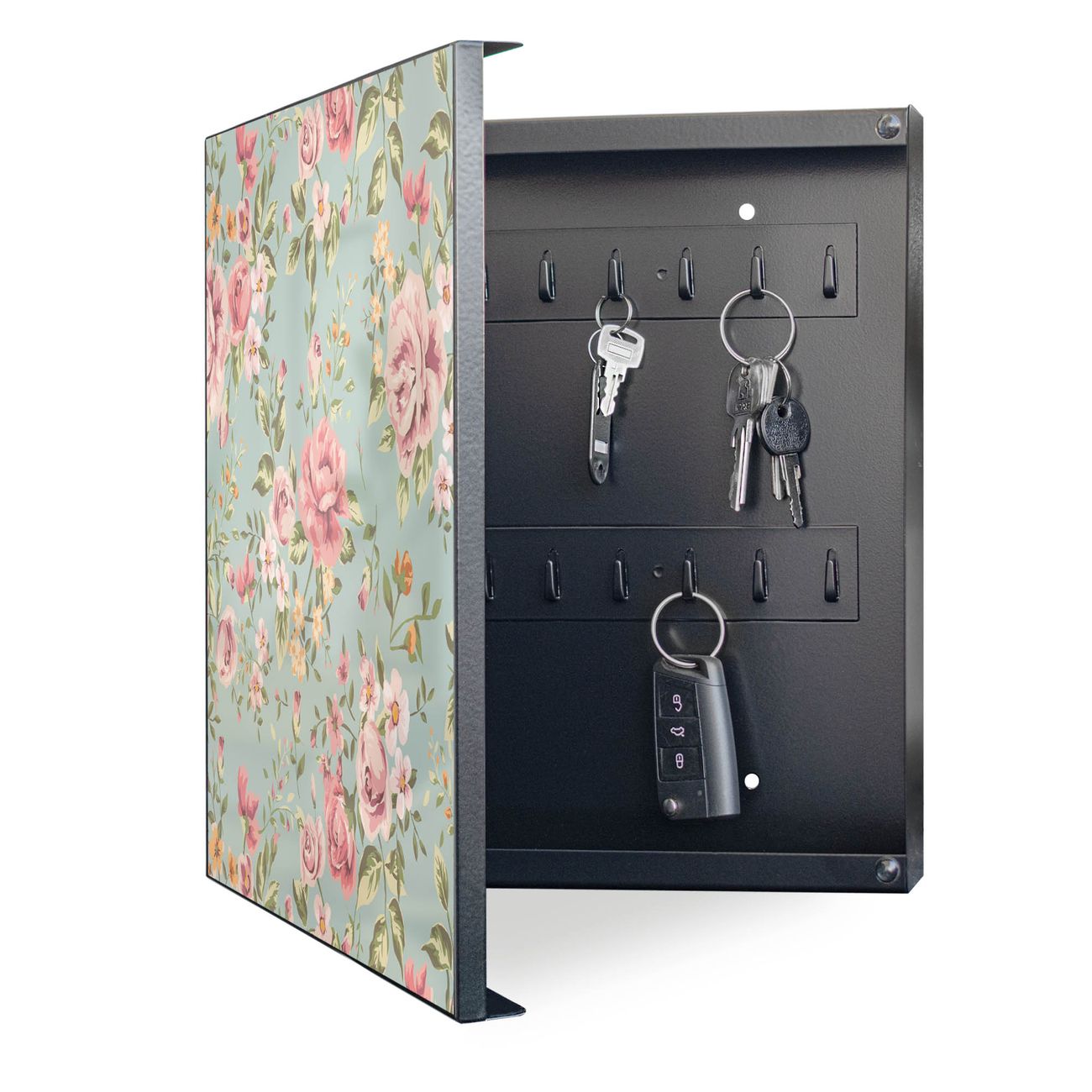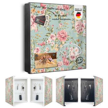 Bringe Ordnung und Eleganz in deinen Eingangsbereich mit dem banjado Schlüsselkasten Motiv Motiv Altrosa Blume. Die moderne Schlüsselbox kombiniert funktionales Design mit hochwertiger Verarbeitung und wird so zu einem echten Hingucker in Flur, Büro oder Ferienwohnung. ✅ Stilvolle Schlüsselaufbewahrung mit Motiv Motiv Altrosa Blume Der Design-Schlüsselkasten Motiv Motiv Altrosa Blume bietet Platz für bis zu 32 Schlüssel, die auf 4 stabilen Reihen mit je 8 Haken übersichtlich verstaut werden. Mit seinen kompakten Maßen von 30 x 30 x 5 cm passt die Schlüsselbox perfekt auch in kleinere Räume. Der schwarz lackierte Stahlkorpus mit links angeschlagenem Türscharnier harmoniert mit gedruckten Folie auf der Front und fügt sich nahtlos in jedes Wohnambiente ein. Ob als Schlüsselorganizer für Zuhause oder als praktische Lösung für Büros, Praxen und Gewerbe, der banjado Schlüsselkasten sorgt für Ordnung und Übersicht. Dank der magnetischen, mit Kreidestiften beschreibbaren Folie auf der Front kannst du Notizen anheften oder Termine direkt auf der Oberfläche festhalten. Die Schlüsselbox Motiv Motiv Altrosa Blume zur Wandmontage wird inklusive Befestigungsmaterial geliefert und ist schnell angebracht. So hast du deine Schlüssel jederzeit griffbereit und zugleich stilvoll verstaut. Mit diesem banjado Schlüsselkasten Motiv Motiv Altrosa Blume kombinierst du praktische Aufbewahrung mit stilvollem Wohndesign. Ob privat oder geschäftlich, die Schlüsselbox sorgt für mehr Ordnung, Übersicht und ein wohnliches Ambiente.Vorteile im Überblick
