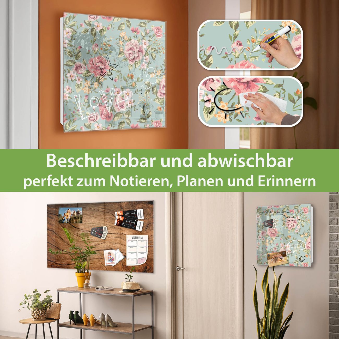 Bringe Ordnung und Eleganz in deinen Eingangsbereich mit dem banjado Schlüsselkasten Motiv Motiv Altrosa Blume. Die moderne Schlüsselbox kombiniert funktionales Design mit hochwertiger Verarbeitung und wird so zu einem echten Hingucker in Flur, Büro oder Ferienwohnung. ✅ Stilvolle Schlüsselaufbewahrung mit Glasfront im Motiv Motiv Altrosa Blume Der Design-Schlüsselkasten Motiv Motiv Altrosa Blume bietet Platz für bis zu 50 Schlüssel, die auf 5 stabilen Reihen mit je 10 Haken übersichtlich verstaut werden. Mit seinen kompakten Maßen von 30 x 30 x 5 cm passt die Schlüsselbox perfekt auch in kleinere Räume. Der weiß lackierte Stahlkorpus mit rechts angeschlagenem Türscharnier harmoniert mit der Glasfront und fügt sich nahtlos in jedes Wohnambiente ein. Ob als Schlüsselorganizer für Zuhause oder als praktische Lösung für Büros, Praxen und Gewerbe, der banjado Schlüsselkasten sorgt für Ordnung und Übersicht. Dank der magnetischen, mit Kreidestiften beschreibbaren Glasfront kannst du Notizen anheften oder Termine direkt auf der Oberfläche festhalten. Die Schlüsselbox Motiv Motiv Altrosa Blume zur Wandmontage wird inklusive Befestigungsmaterial geliefert und ist schnell angebracht. So hast du deine Schlüssel jederzeit griffbereit und zugleich stilvoll verstaut. Mit diesem banjado Schlüsselkasten Motiv Motiv Altrosa Blume kombinierst du praktische Aufbewahrung mit stilvollem Wohndesign. Ob privat oder geschäftlich, die Schlüsselbox sorgt für mehr Ordnung, Übersicht und ein wohnliches Ambiente.Vorteile im Überblick