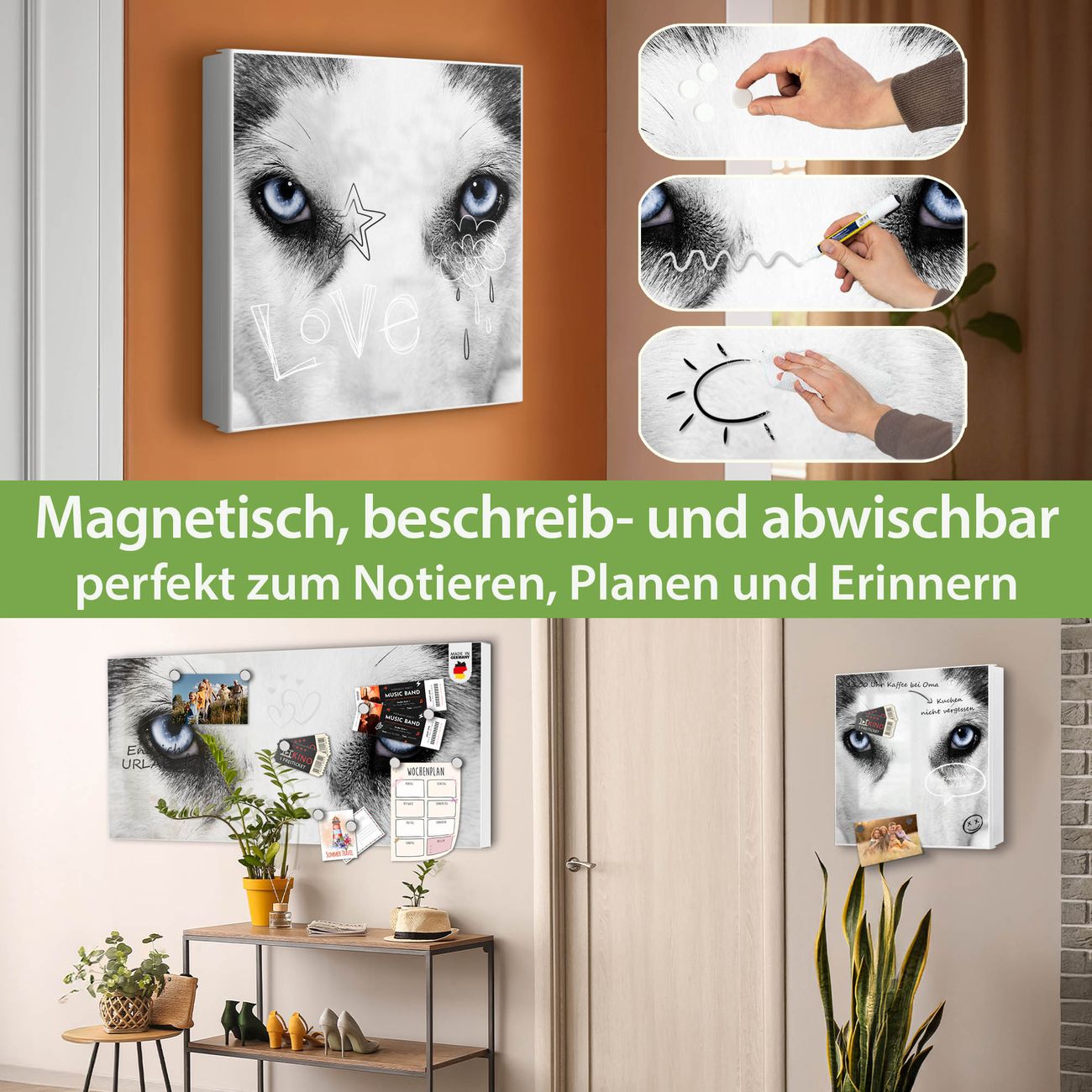 ✅ Magnetisch und mit Kreidestift beschreibbar, rechts angeschlagene TürOrdnung und Design in einem